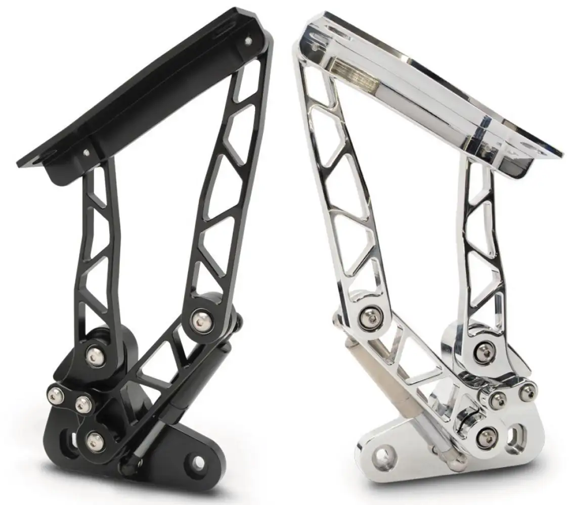 As with most of the high quality billet aluminum parts offered by Eddie Motorsports, the billet hood hinges are available in a bright polished, raw machined or a matte black Fusioncoat finish.