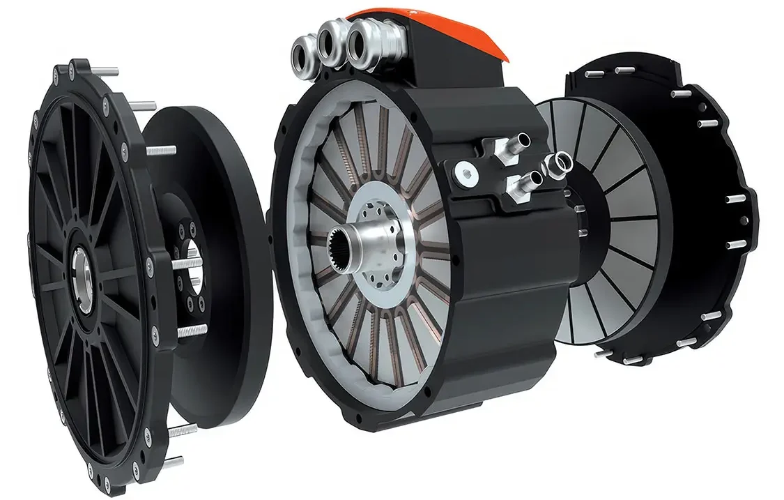 An axial flux motor is a type of motor construction where the magnetic flux lines run perpendicular to the motor shaft as opposed to parallel to the motor shaft. Axial flux motors are significantly shorter, lighter, and more efficient than their radial flux counterparts for a comparable amount of power. However, they are significantly more difficult to manufacture, resulting in a higher price and limiting them to mostly prototype applications at this time.