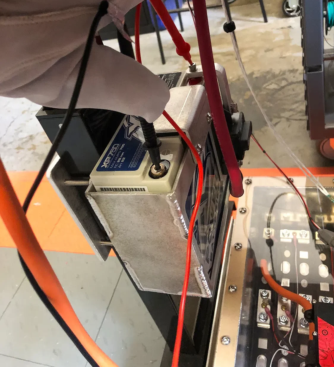 If this last reading is NOT the same as when you first tested it, your high voltage circuit may have blown the fuse to your DMM and could therefore still be live! DO NOT remove PPE until this step reflects the correct voltage. For example, in the photo, the known voltage source was a 12V battery with a reading of 12.17V for the first test. After verifying ~0V on the high voltage component to be worked on, and re-testing on the same battery, one should expect to see the same reading of 12.17V. If that is not the case, do not remove your PPE and restart your disconnection procedures from the beginning.