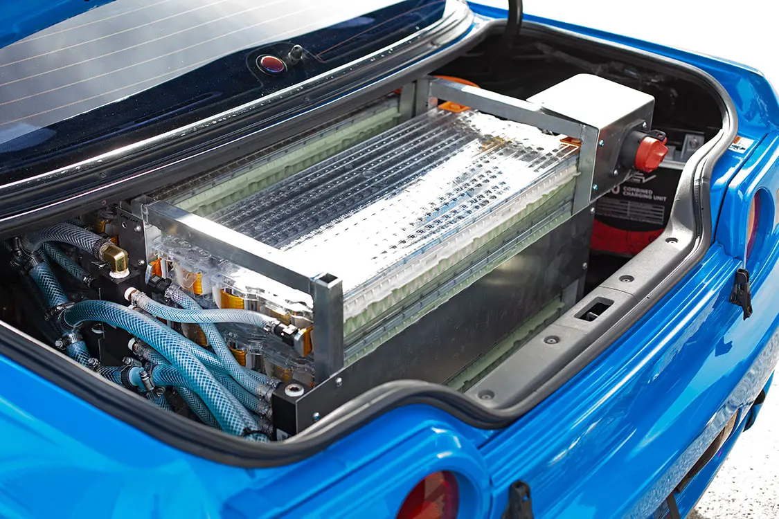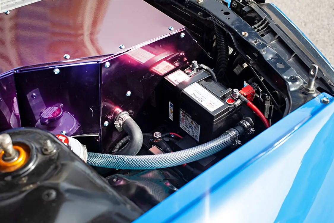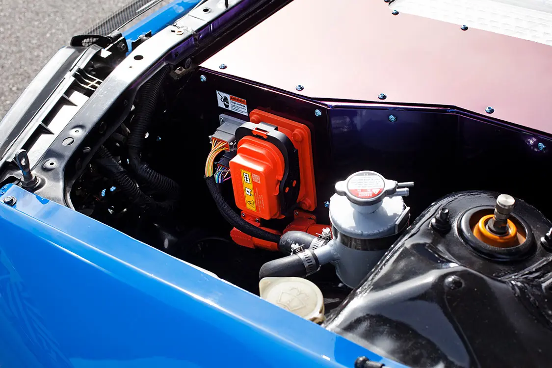 The front battery box was designed to resemble the valve covers of the original inline-6 gas engine that originally powered the car