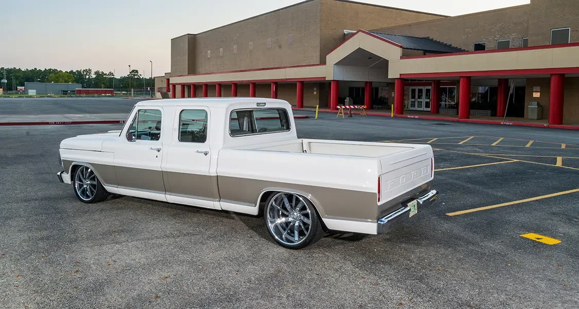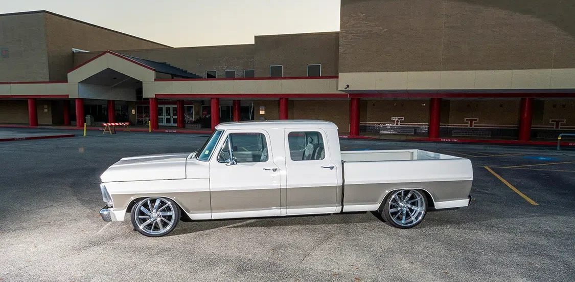 OK, so while this ultra clean F-250 doesn’t get down and dirty hauling parts around like a regular shop truck, it’s more of a mascot for David Wilson’s automotive side business, Resurrected Hot Rods/RHR Customs in Tomball, Texas. David keeps himself mighty busy splitting his time as a construction project manager during the day and a custom car builder after hours and on the weekends. Cool, classic cars and trucks are his forte, and he has built up a solid clientele since opening his shop.