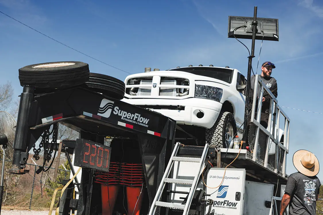 Two dynos, a fresh burnout pit, and enough parking space to hold a Taylor Swift concert seemed to be enough to host this event, but man were they wrong! Their expectations were blown out of the water with an astounding turnout that brought 1,500 trucks, and 10,000 spectators made for an insane first go for Blake and his crew. The line for the dyno was huge, and it didn’t die down until after the sun went down. The big power guys all came out to compete in a High Horsepower Purse where Greg A ended up making a massive 3,059hp pull to take the W for highest HP of the weekend, just after a few hiccups trying to get the truck back together before the event.