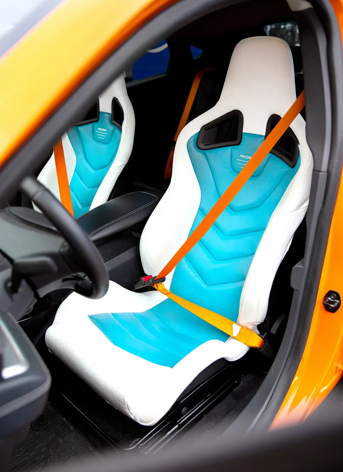 • Custom orange Seatbelt Planet seatbelts