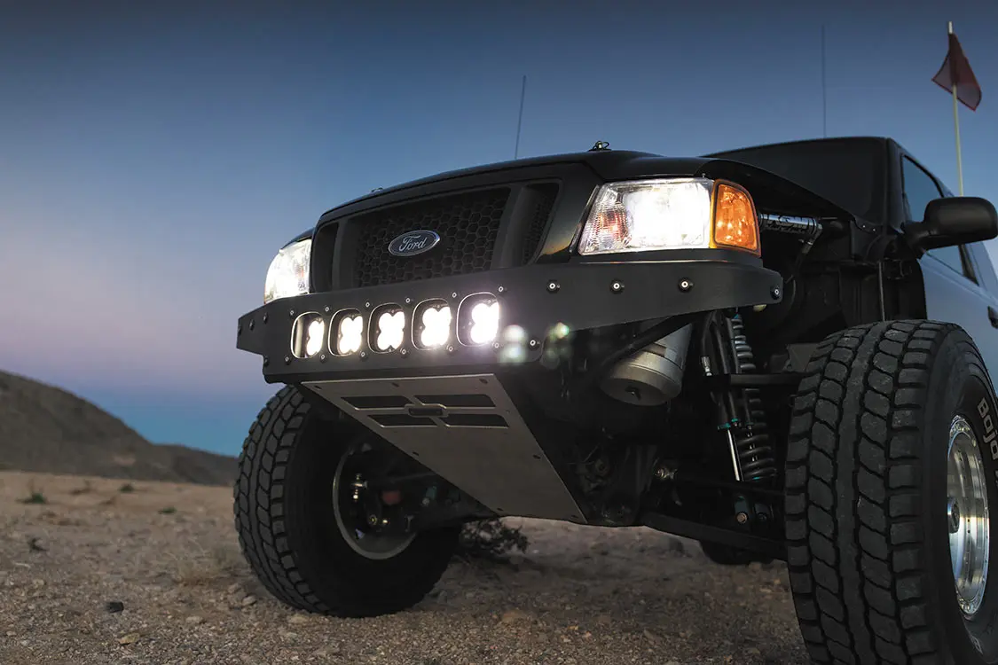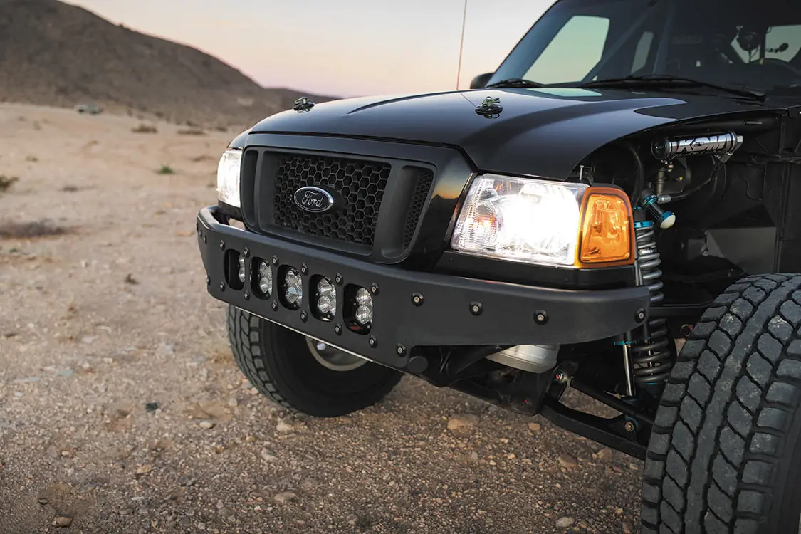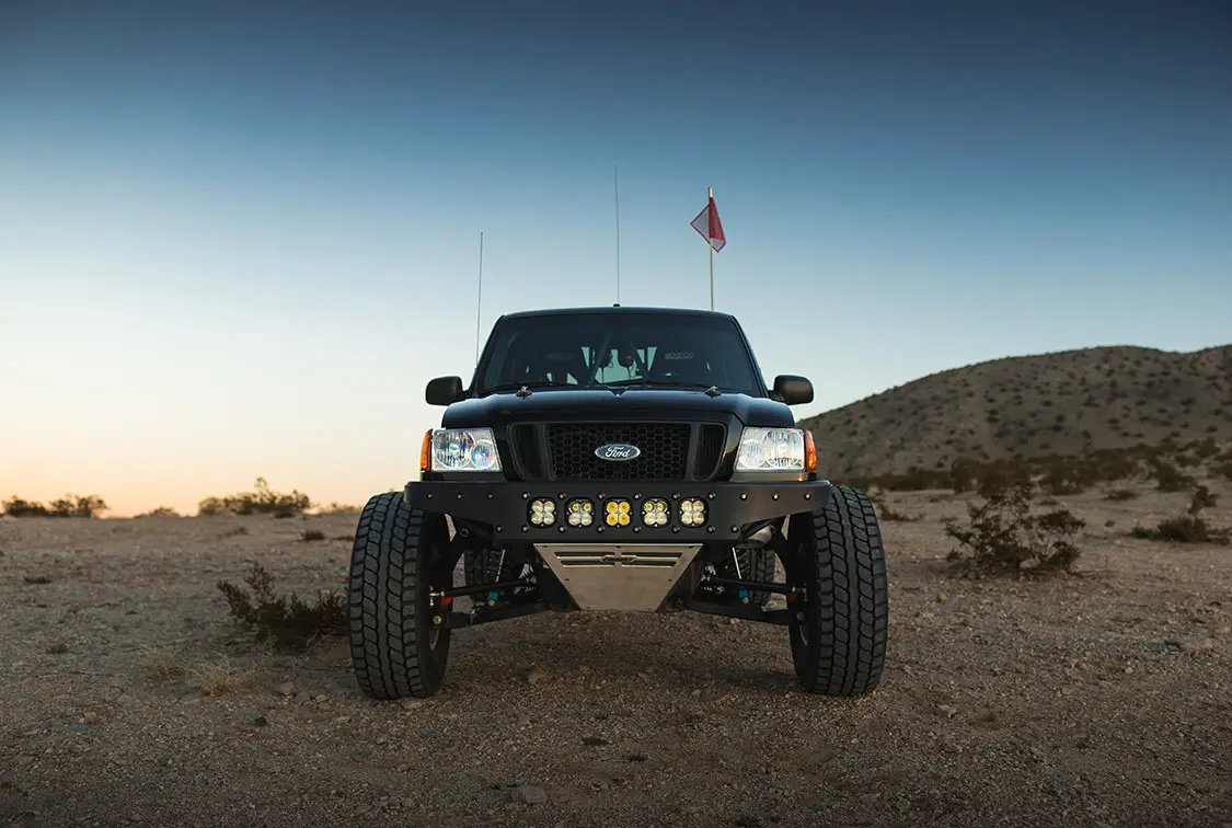 BTF custom bumpers, Baja Designs lighting, OEM Ford Ranger grille and headlights