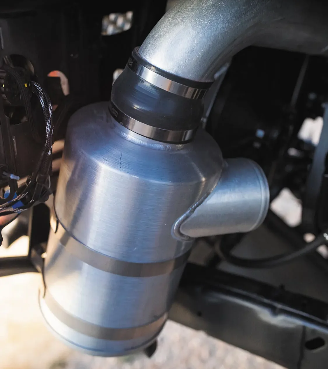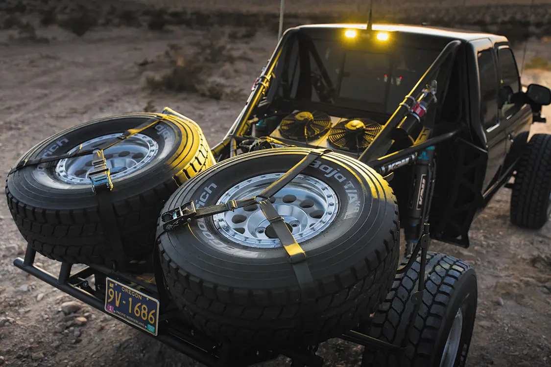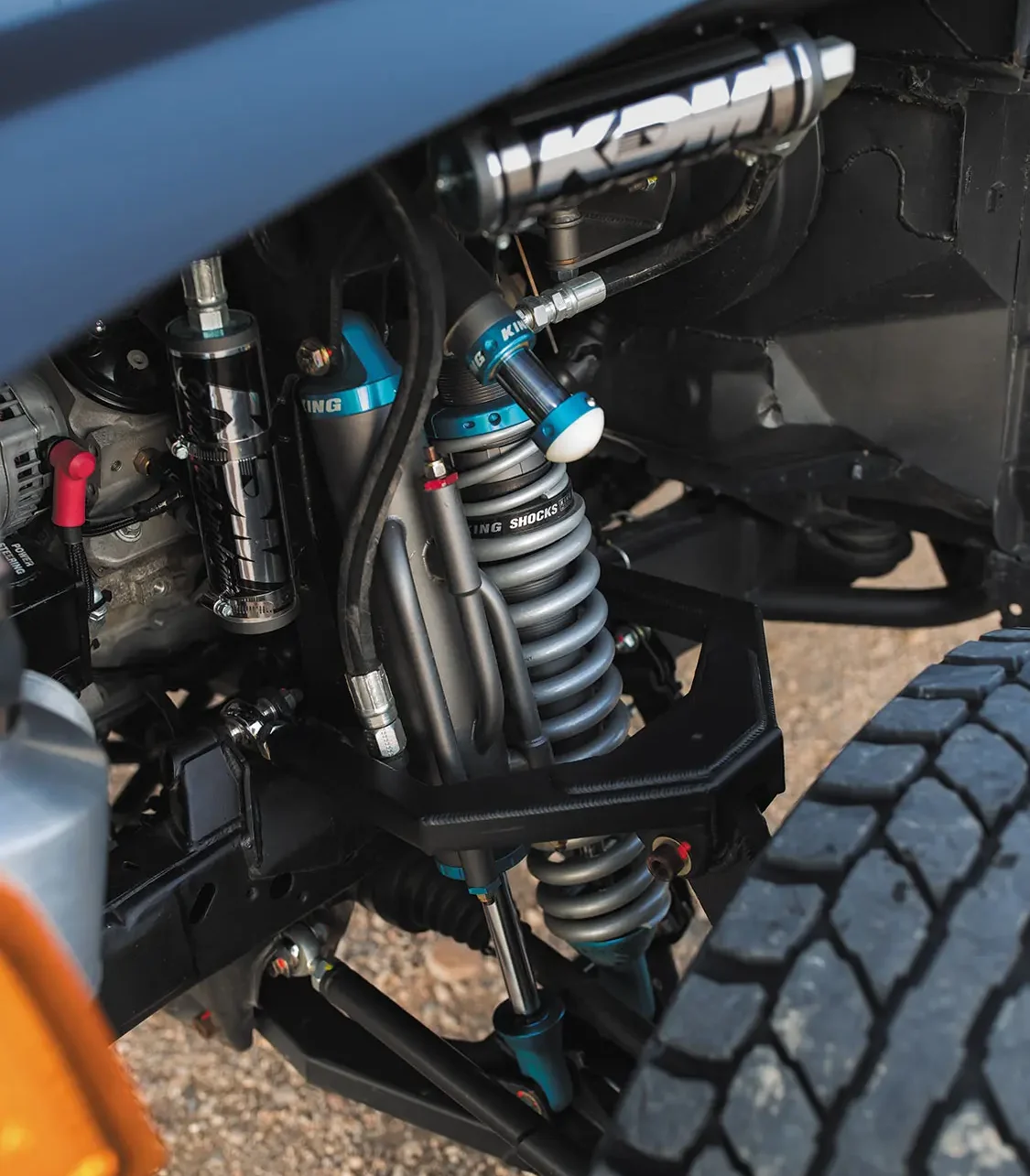 Of course, BTF also outfitted the Ranger’s new chassis work with King bumpstops at the front and rear, as well as 55-inch links, a triangulated three-bar system, a custom billet sway bar, and skid plates that were all designed and built in-house. The crew at BTF also installed upper control arm gussets, and fabbed a cab cage that is tied into the engine cage and back half. The entire orchestration of tube work is an incredible sight to behold. A set of 17×9 Method #103 beadlock wheels and 37-inch BFG Baja T/A Project tires allow the Ranger to traverse any type of terrain it encounters, and just in case things go south, there are two easy-to-access spares ready to go.