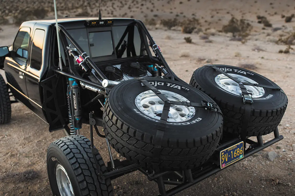 Of course, BTF also outfitted the Ranger’s new chassis work with King bumpstops at the front and rear, as well as 55-inch links, a triangulated three-bar system, a custom billet sway bar, and skid plates that were all designed and built in-house. The crew at BTF also installed upper control arm gussets, and fabbed a cab cage that is tied into the engine cage and back half. The entire orchestration of tube work is an incredible sight to behold. A set of 17×9 Method #103 beadlock wheels and 37-inch BFG Baja T/A Project tires allow the Ranger to traverse any type of terrain it encounters, and just in case things go south, there are two easy-to-access spares ready to go.