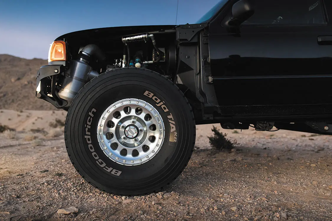 17×9 Method Race Wheels 103 beadlock wheels, 37-inch BFG Baja T/A Project tires, Wilwood braking components, BTF custom remote mount reservoir