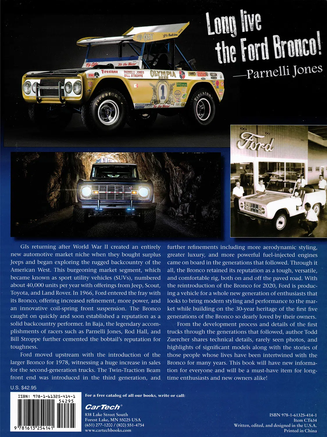 Several years before he landed a legal driver’s license, author Todd Zuercher began his Bronco life in the mountains of Northern Arizona behind the wheel of his parents’ 1969 wagon. Those backcountry adventures cutting firewood and camping planted a seed of inspiration which germinated into a 40-year love affair with the breed. As a collector and ardent disciple of all things Bronco, his encyclopedic knowledge of Ford’s off-road pony rendered him the perfect candidate to pen its chronicle.