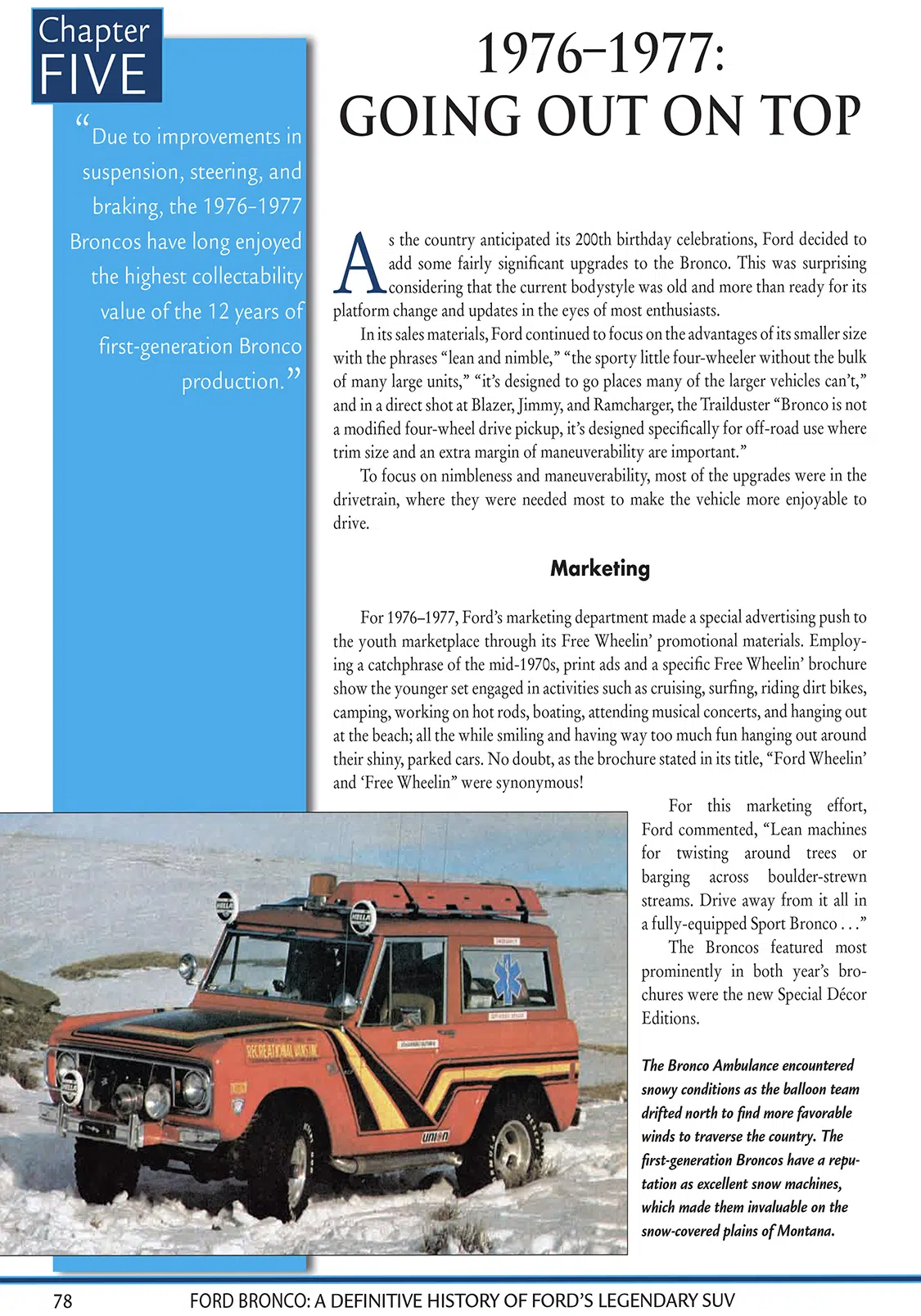 An entire section, Broncos in Competition, is dedicated to Bill Stroppe’s work with Ford in crafting their off-road racing program, the legendary Rod Hall and his 1969 Mexican 1000 victory, and Indianapolis 500 champion Parnelli Jones’ development of Big Oly. Other chapters include Bronco’s transition into the full-size market, the introduction of the more economical Bronco II, the platform’s retirement in 1996, and even the O.J. Simpson debacle.