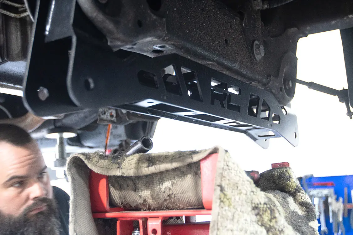 10. You can see the parts included in this 5-inch lift kit from Rough Country. We just need to install the crossmember for the new controller mount locations and new spindles and springs for the front.11. Andrew and Brenden both installed the front crossmembers, which will give us a new lower mounting location for the lower control arms