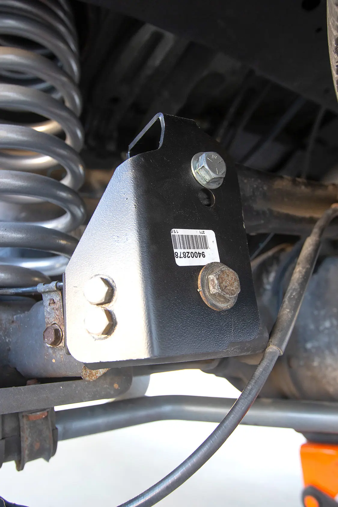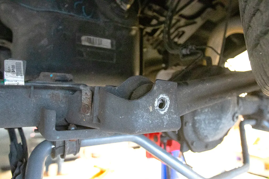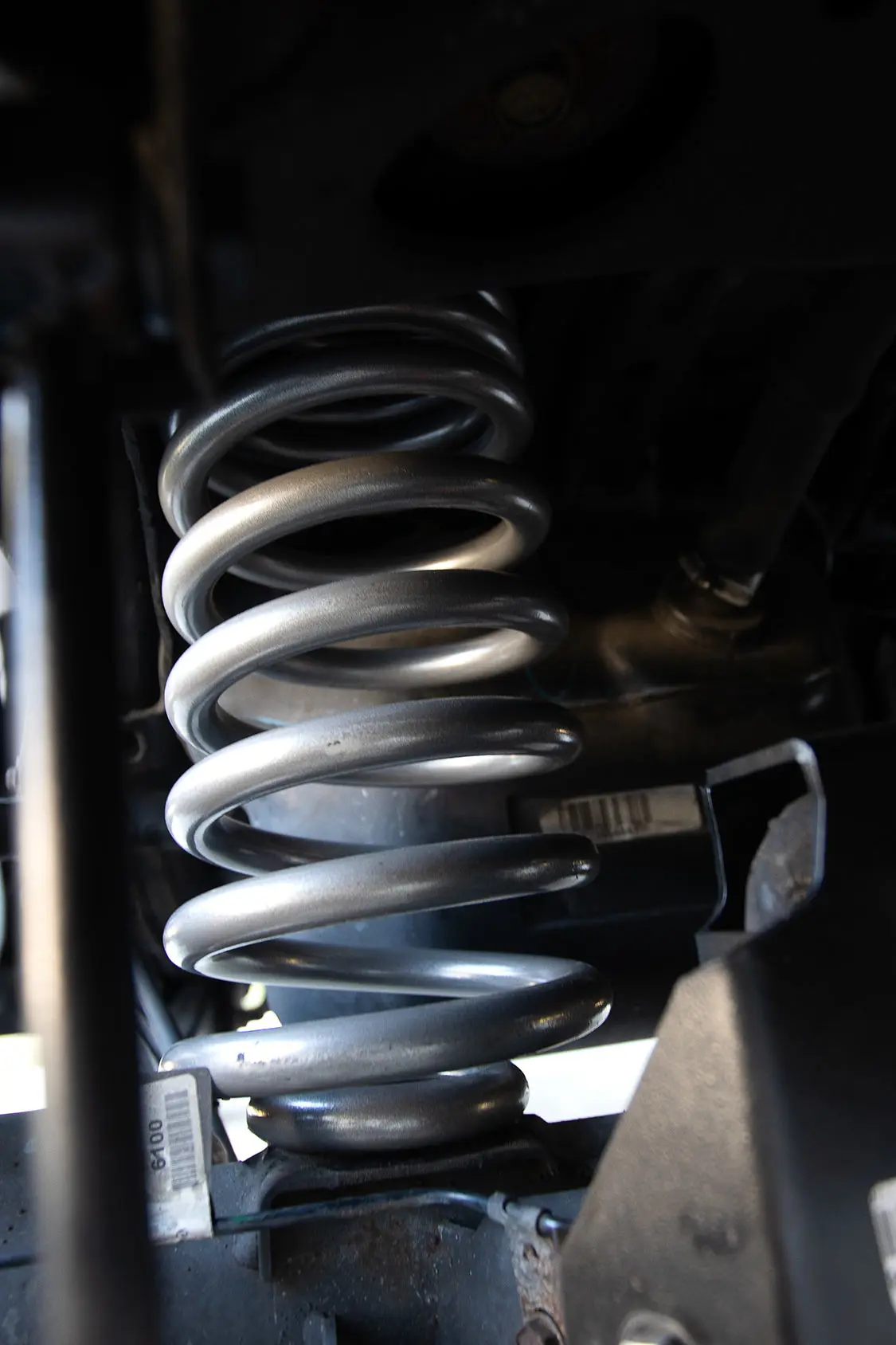 21. The new spring from Rough Country was then slipped into place on the factory spring perch.