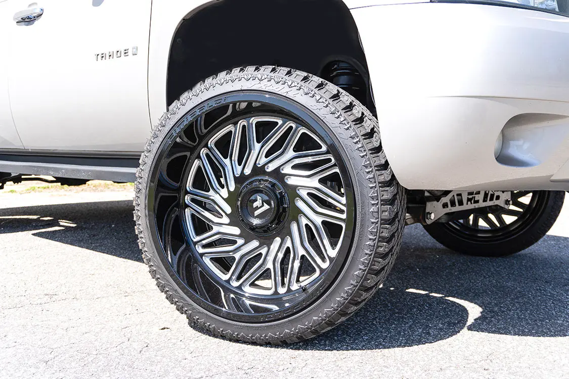24. These new 24-inch Fittipaldi wheels and Atturo tires looked amazing and we were very happy with the results. We did have to trim the front bumper just a little bit as well as remove the lower front valance for clearance.25. The original look of this Tahoe was basic and boring, which is why we started modifying in the first place.26. The slammed stance that we rode on for a few years looked killer, but the ride quality was not where we wanted it for a family-used SUV.27. The new look of this 2008 Chevy Tahoe might not be everyone’s taste, but we really like the new styling and stance as well as the improved ride quality. This was a great way to have a new fresh-feeling truck without buying an expensive new Chevy off the dealer lot.