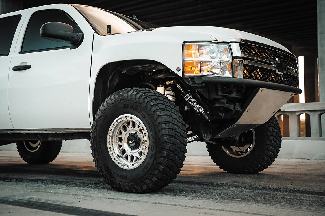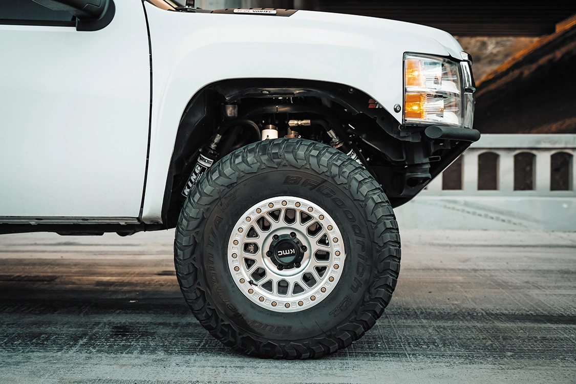 Wheels & Tires: Tires: BFGoodrich KM3 37-inch, Wheels: KMC Desert Grenade, 17-inch