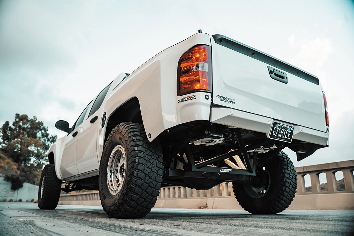 Suspension upgrades transform the Silverado into a prerunner capable of navigating demanding trails with ease. Garrett opted for a Mazzulla Offroad race kit in the front and a cantilever rear suspension system. King 2.5-inch coilovers and 3.0 triple bypass shocks, painted to match the truck’s theme, deliver exceptional articulation and handling. Supporting components from Dirt King and Mazzulla ensure the build maintains a balance between strength and flexibility, making it ideal for the rugged Southern California terrain.