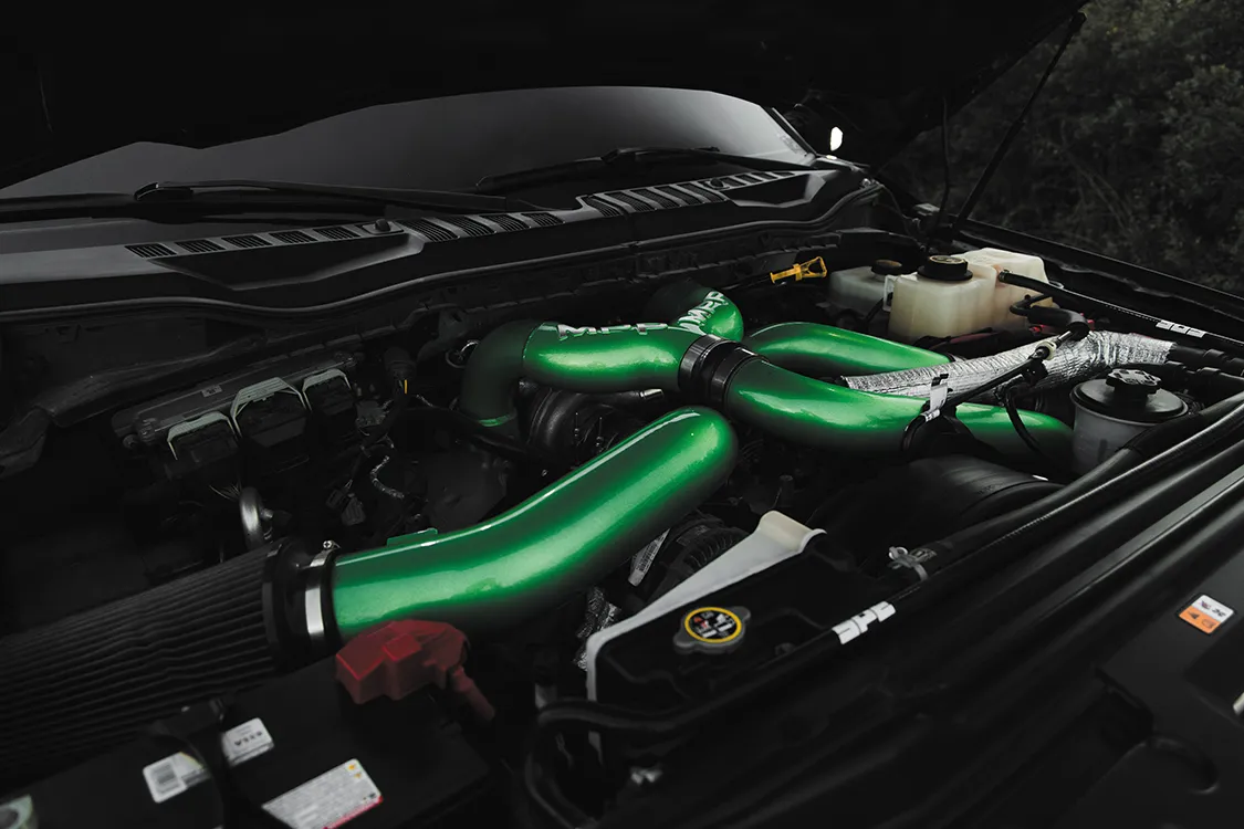 To start, Harley swapped on some 20×12 Weld Scorch wheels wrapped in a 33-inch Toyo Open Country M/T tires. Fox 2.0 Adventure Series shocks replace OEM shocks, and 10 No Limit LED rock lights rock the fender wells. For unsurpassed performance, Harley put a 5-inch exhaust with a 6-inch Jamo tip, a Maryland Performance Parts High Flow Piping Kit, an SPE Coolant Line Reroute Kit, and an EZ Lynk for holding the tunes.