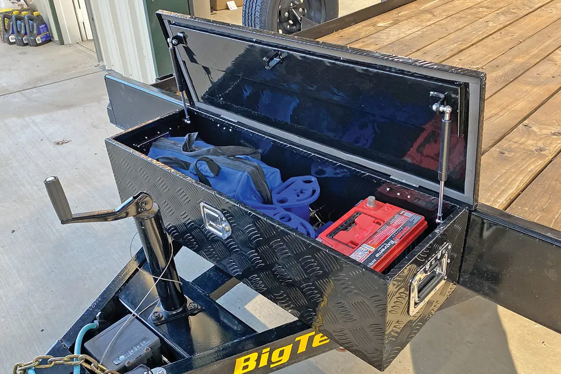 I found the solution at the SEMA Show in the form of Weigh-Safe. Their beautiful CNC-milled aluminum hitch, which is available for up to 21,000 loads, has a scale built into the draw bar. Just pull the vehicle onto the trailer until the scale hits the target tongue weight, and voilà! To expedite loading, I’ve put Sharpie marks on the deck for each of my vehicles. Like Mac’s gear, the Weigh-Safe isn’t the cheapest product on the shelf, but the time saved, improved handling, and peace of mind is priceless.