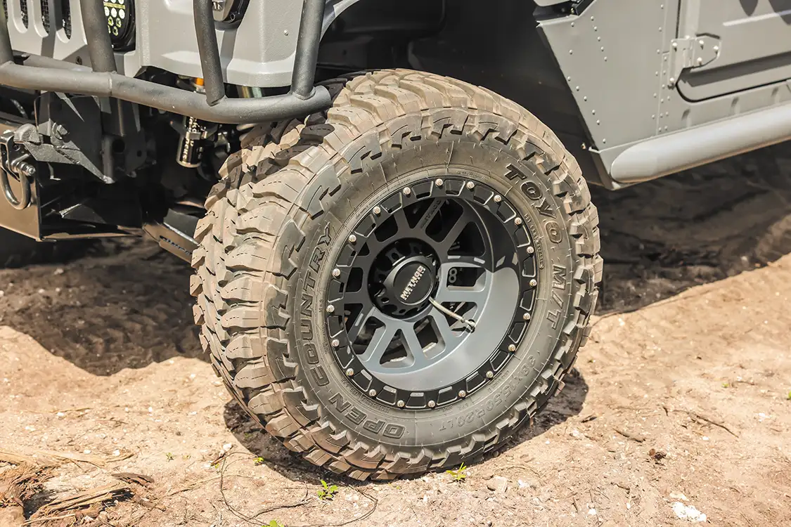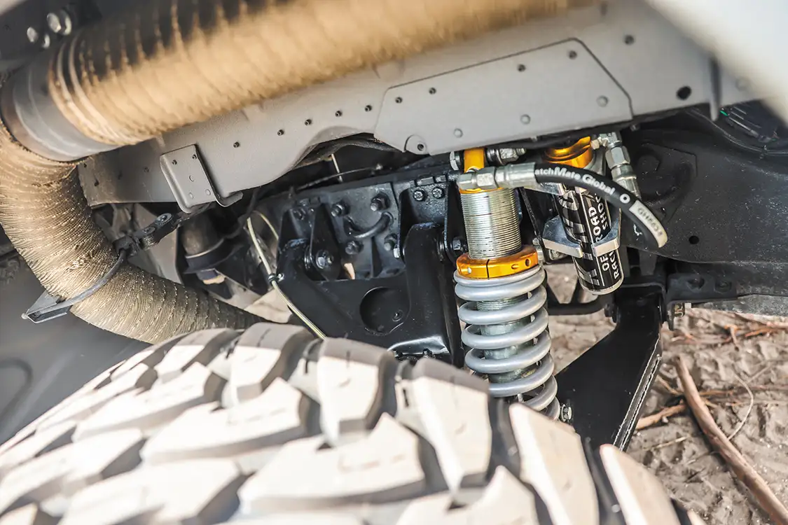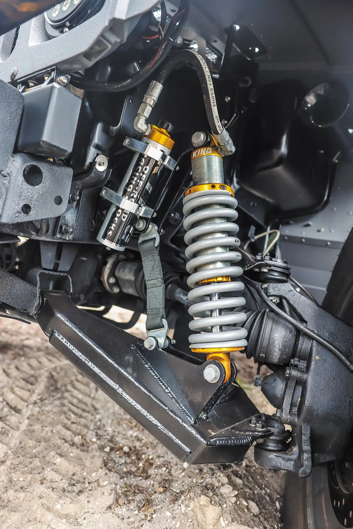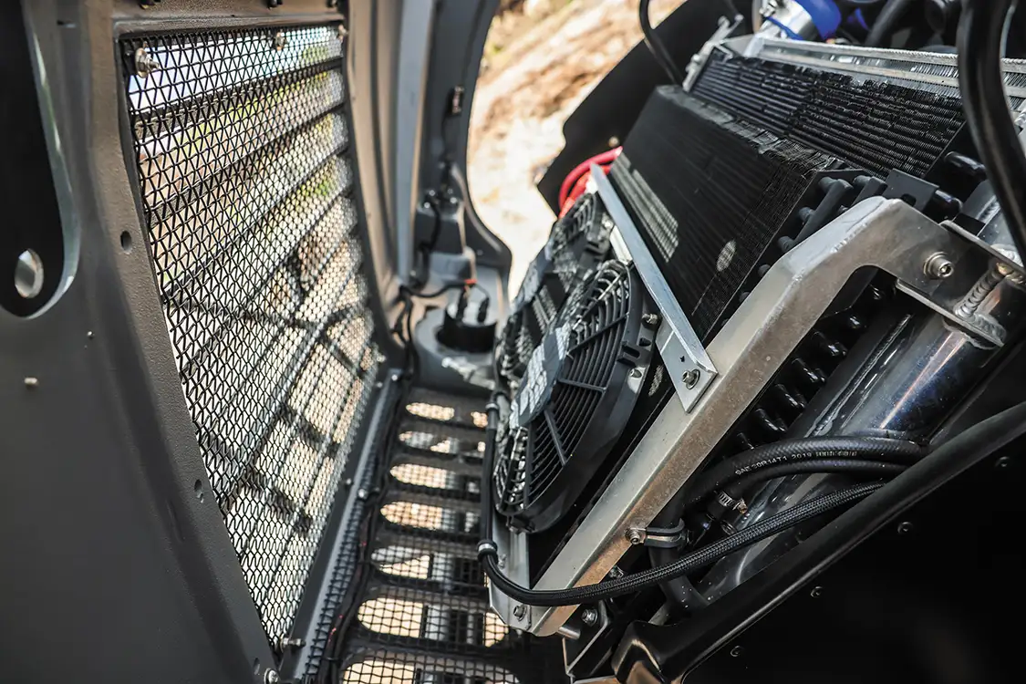 For suspension, King coilovers hold it down with smooth travel and full adjustability. The chassis was tweaked and refitted to make it all work together like clockwork. Wilwood brakes handle stopping duties, but even that wasn’t plug-and-play. Anthony had custom CNC brackets fabbed up to relocate the calipers from the axle to the hub, boosting clearance and performance. It’s this kind of attention to detail that separates a good build from a great one.