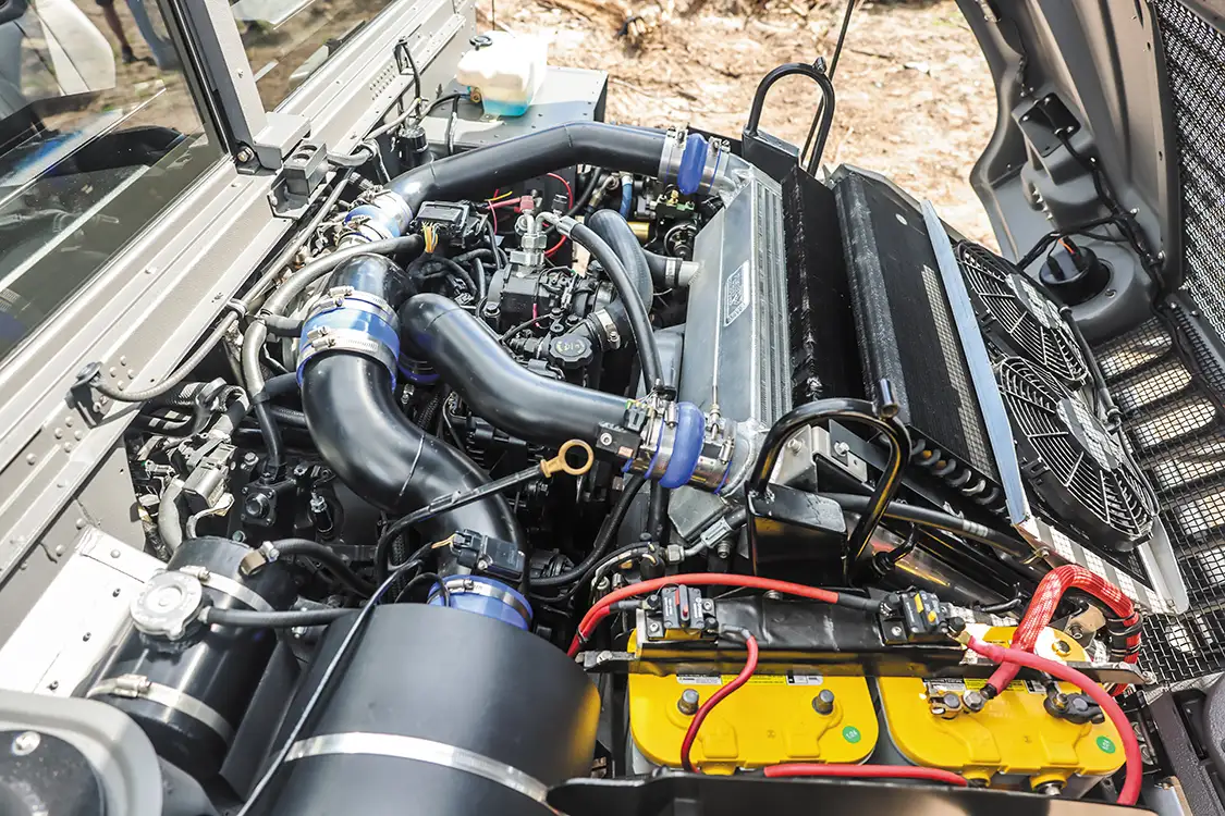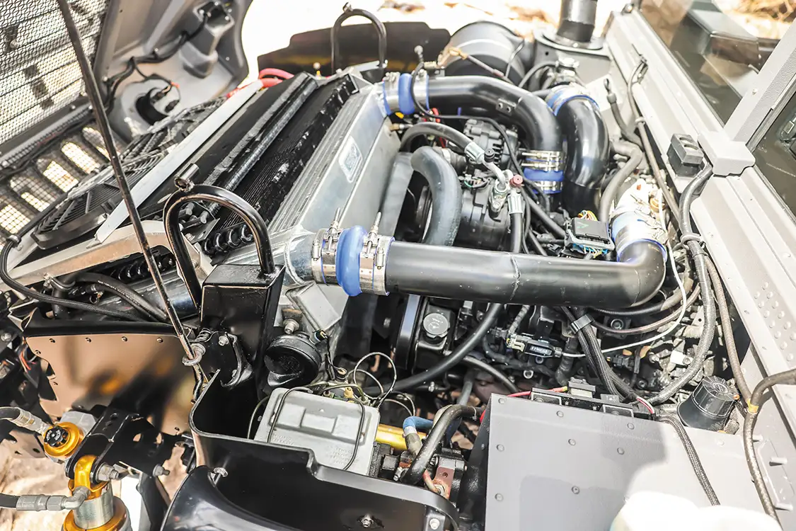 Sitting in the frame rails now is a built 2006 Duramax diesel, wrenched on by the team at Pela Motorsports in Jupiter, FL. This thing’s got all the right stuff: a high-flow Y-bridge, upgraded turbo and intercooler, pusher intakes, and a full 3-inch side-exit exhaust that barks louder than a guard dog with something to prove. It’s paired to a built Allison trans with billet internals and a Goerend ML HD torque converter. Shifts are handled by a custom shifter, and power goes through a standalone transfer case setup. The drivetrain alone is a monster—capable of towing, crawling, or hauling hard, all without breaking a sweat.