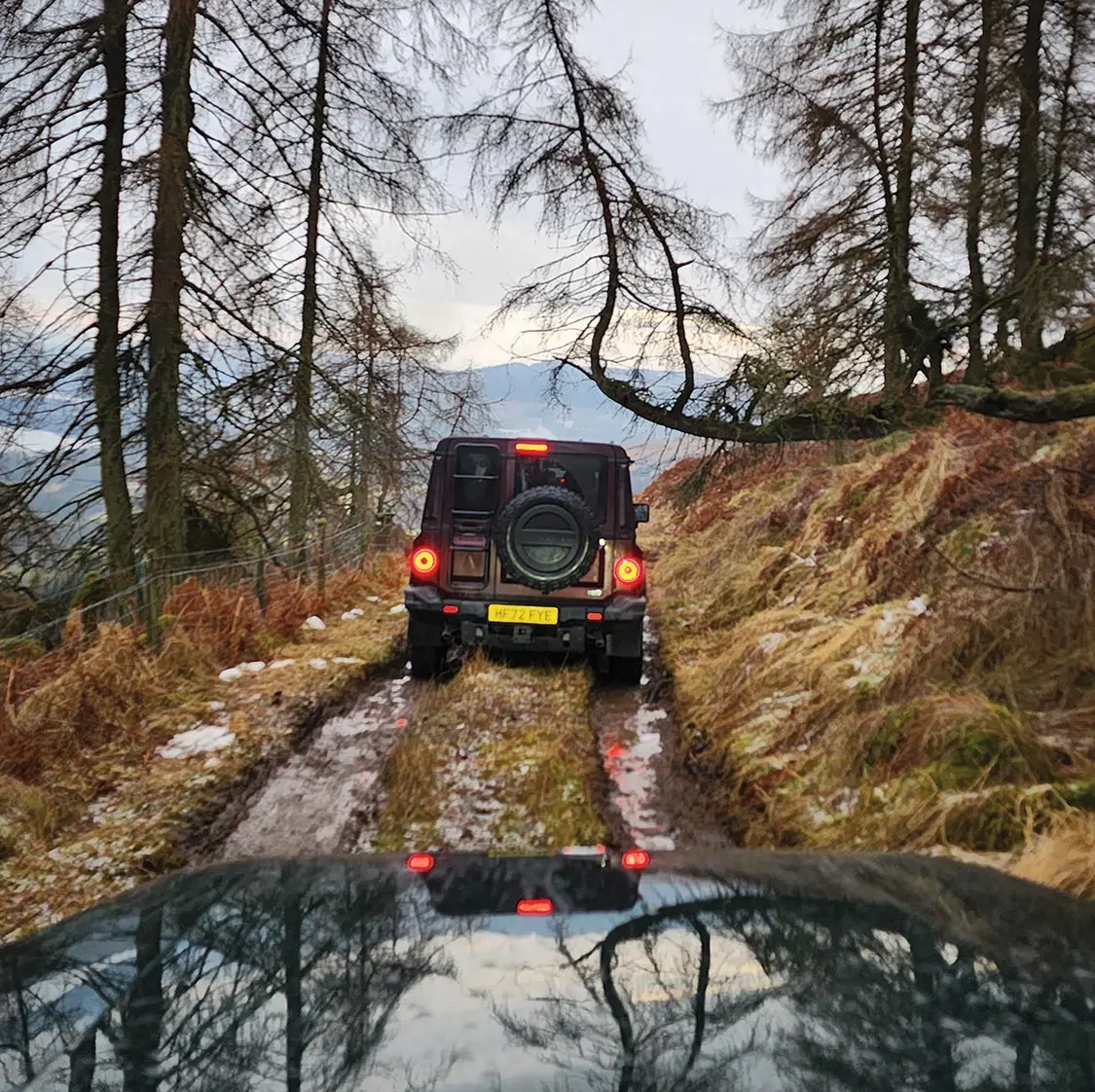 A stunning sunset greeted us alongside a narrow, winding trail that tracked by Lochan na h-Earba (yes, that’s the correct spelling). It’s a picturesque region incorporating two lochs (or lakes) to the south of Loch Laggan on the Ardverikie Estate. We stayed the night at the Kingshouse Hotel in Glencoe and made our way south past Loch Lomond, one of the UK’s largest expanses of open water, to the Luss Estate for our next round of off-roading during a drizzly day.