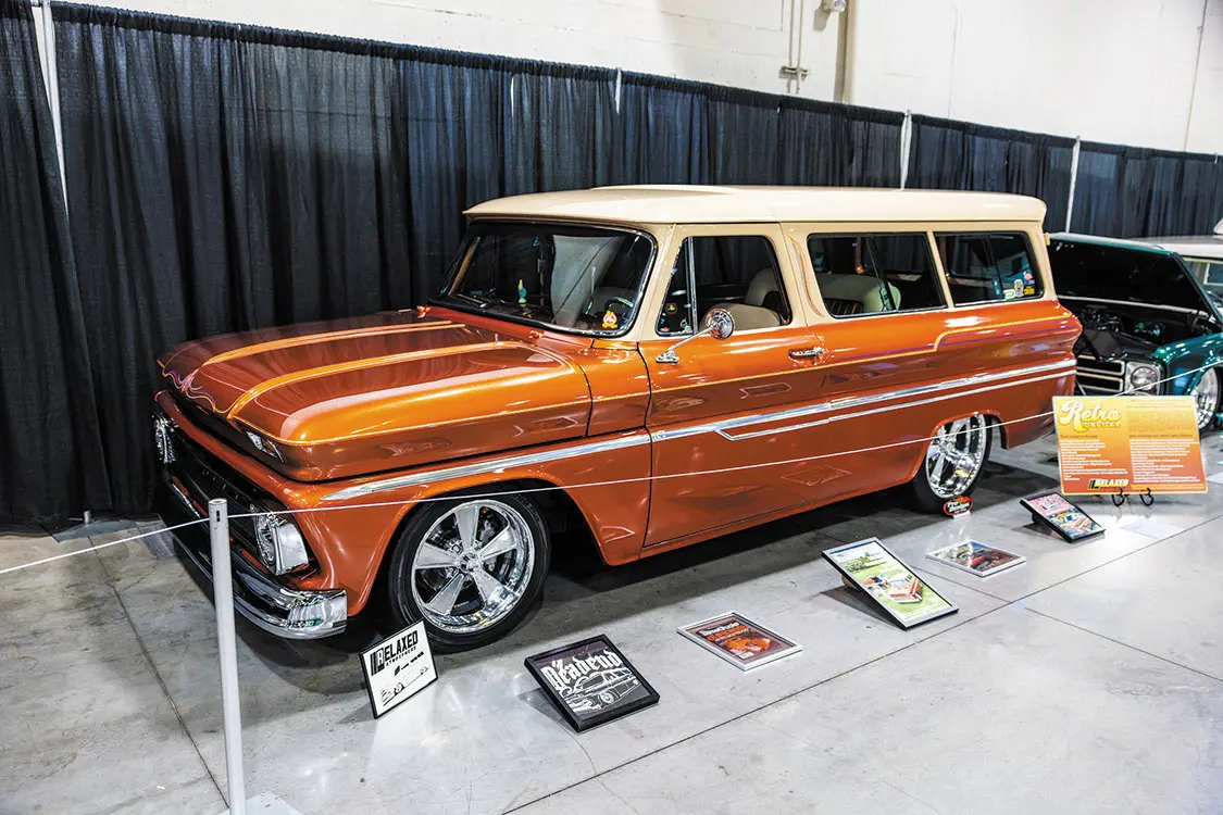 Outside, the 18th Annual Granddaddy Drive-In welcomed hundreds of hot rods, muscle cars, classics, customs, and trucks each day. Other highlights included a lowrider exhibit, the vintage-themed Suede Palace, and over 15 custom flat-bottom, wood-deck, drag, and K-boats with supercharged engines and intricate paintjobs.
