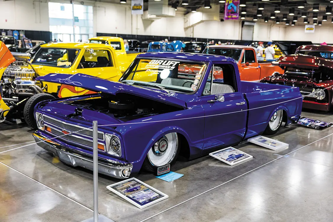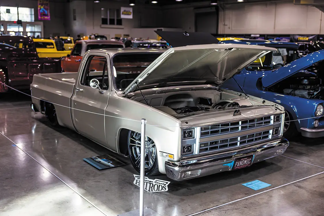 This year’s event also featured something that drew us in for obvious reasons—a special “Keep on Truckin’: 50 Years of Classic Haulers from 1948-1998” indoor exhibit presented by LMC Truck. Some of the most recognizable builds included “Copperhead,” a 1967 Chevy C10 built by Stacey David on the television show “Trucks,” Chip Foose’s 1956 Ford F-100 built on the show “Overhaulin’” and trucks by famed builders such as Boyd Coddington, “Lil” John Buttera, “Fat Jack” Robinson, Art Chrisman, Tim Strange, and many others were on full display. There were also talks of building this into an annual “Americas Most Beautiful Truck” competition on this stage. Fingers crossed as there were plenty of gorgeous C10 builds throughout the fairgrounds.