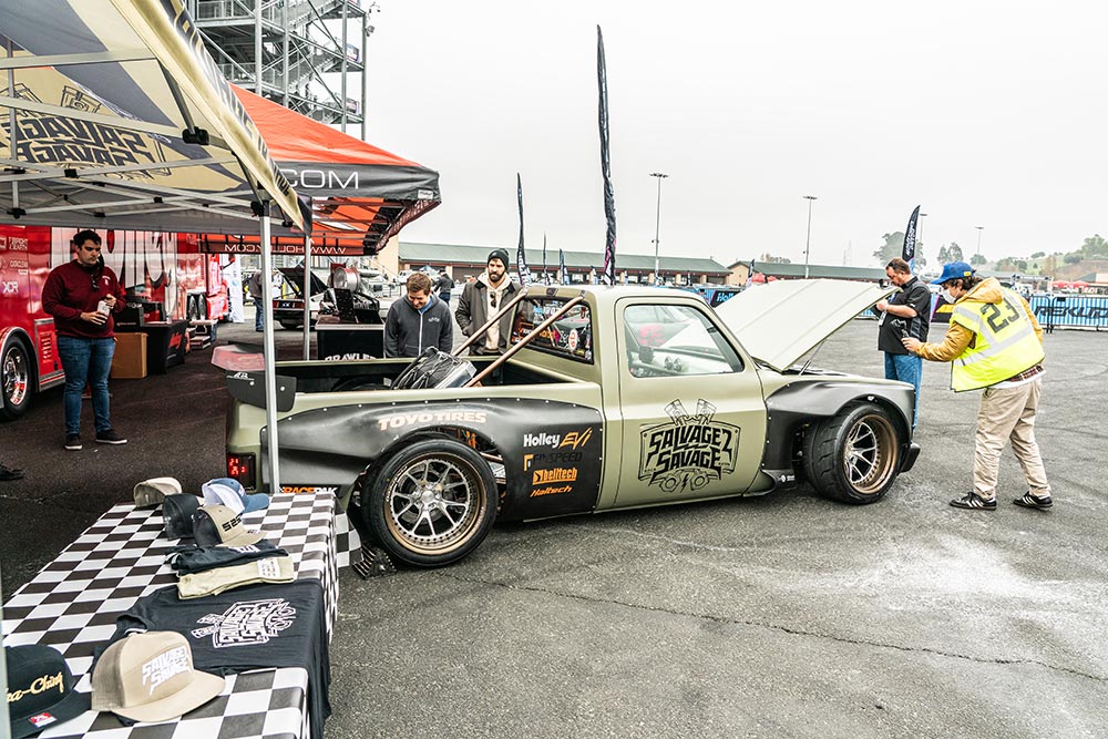 In addition to Holley, several well-known electric builders and shops were present to show off their talent. Salvage 2 Savage, Rich Rebuilds, and even Bisi Ezerioha of Bisimoto was there with his insane Porsche 935 K3V widebody/slantnose beast. Even Ford Performance was in attendance, racing its Cobra Jet 1400 Mustang on the drag strip and displaying its F-100 Eluminator pickup. Not to be outdone, Current Technology brought out its insane EV dragster to lay down some rubber on the strip.