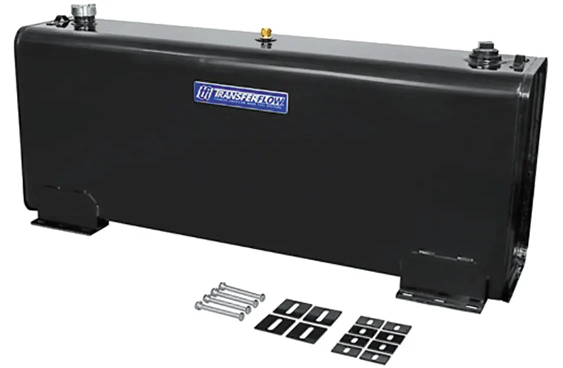 Fill your diesel fuel needs with a safe, legal, and reliable refueling tank from Transfer Flow. The 50-gallon refueling tank is rugged and durability-tested to hold up to daily use. Transfer Flow’s 50-gallon refueling tank is legal to carry diesel fuel, and has two internal baffles to reduce fuel sloshing. The refueling tank is made from 14-gauge aluminized steel for superior corrosion resistance, and is powder coated black for a durable finish. It comes with fuel cap, mounting kit, and installation instructions. Compatible with GPI and Fill-Rite 15-GPM refueling pumps (sold separately). THIS TANK IS NOT TO BE USED FOR GASOLINE.