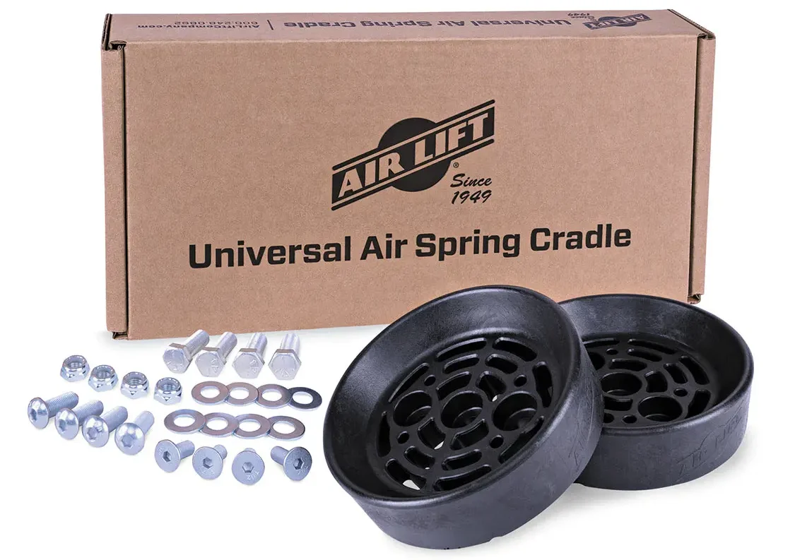 The easy-to-install kit has two cradles made of durable resin and mounting hardware for a perfect fit when installed with a LoadLifter 5000 kit and draining holes to help clear water and debris. Whether adding an air spring kit or upgrading your current setup, the Air Lift Universal Air Spring Cradle kit is the best choice for your lifted truck.