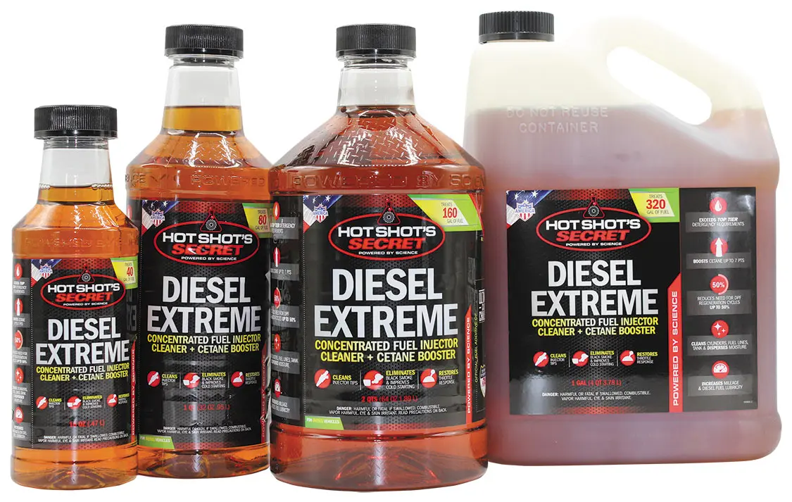 Diesel Extreme effectively cleans internal diesel injector deposits, including waxy and polymeric deposits for improved power and performance. Formulated with a top-tier lubricity additive and cetane improver, Diesel Extreme, a 6-in-1 formula, resolves issues commonly related to ultra low sulfur diesel fuel that can lead to premature failure of fuel system components. This one formula boosts cetane up to seven points, reduces need for DPF regeneration cycles, restores throttle response, and improves cold starting.