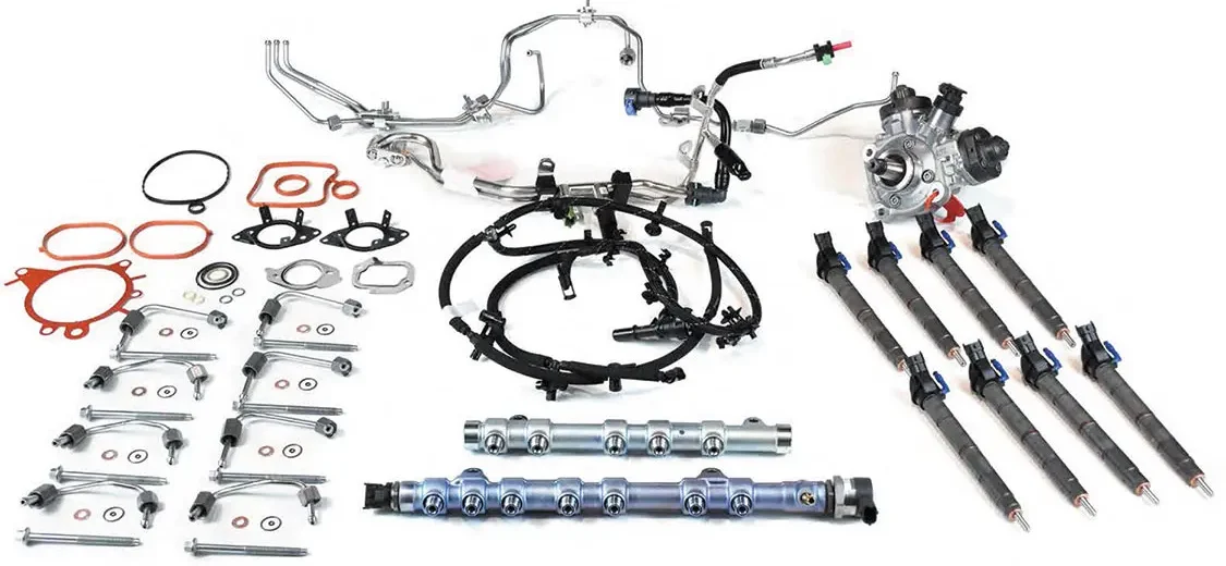 When the CP4 pump fails in your 6.7L Power Stroke or 6.6L Duramax, internal pump debris is typically scattered throughout the fuel system on your engine. As a result, debris from the CP4 contaminates the fuel lines, fuel rails, fuel injectors, and fuel injector lines. For the most thorough and complete repair, this requires the replacement of all of the previously mentioned parts. When your failed CP4 pump contaminates the entire fuel system in your Ford or GM, this kit provides you with a thorough list of parts you’ll need to get your engine back.
