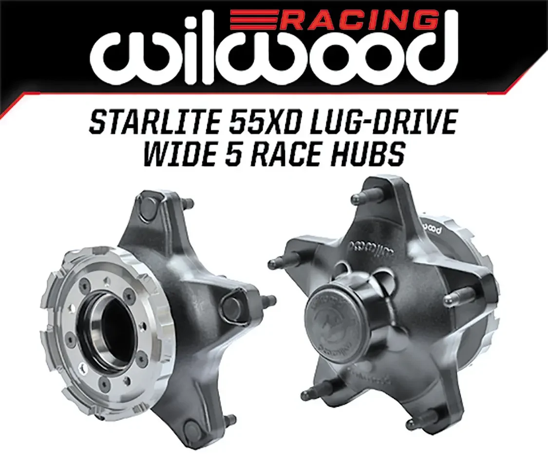Wilwood Racing has engineered an innovative new Lug-Drive dynamic-mount rotor system specifically for the lighter, stronger Starlite 55XD Wide 5 hubs. The 55XD design shaves weight by mounting the forged aluminum rotor adapter closer to the hub’s reinforced center using fewer mounting bolts. The new Lug-Drive system simplifies rotor mounting using a snap ring in place of bolts and safety wire, allowing it to float and heat cycle without distortion for a more consistent pedal feel and longer life.
