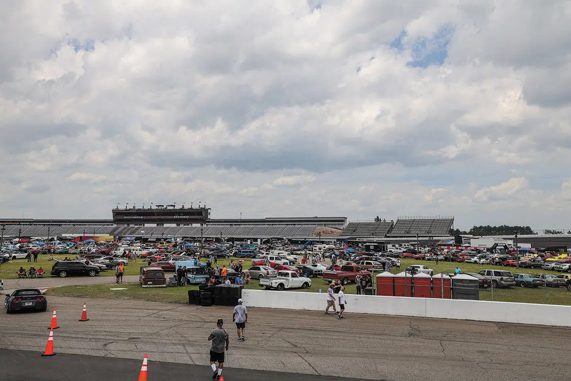 The third day, we left Columbia and went to Rockingham Speedway in Rockingham, North Carolina, where the lines to get in were even longer. We opted to pull off to the side of the road near the entrance and watch the ever-growing lines of hot rods and cool trucks roll in before we pulled inside.