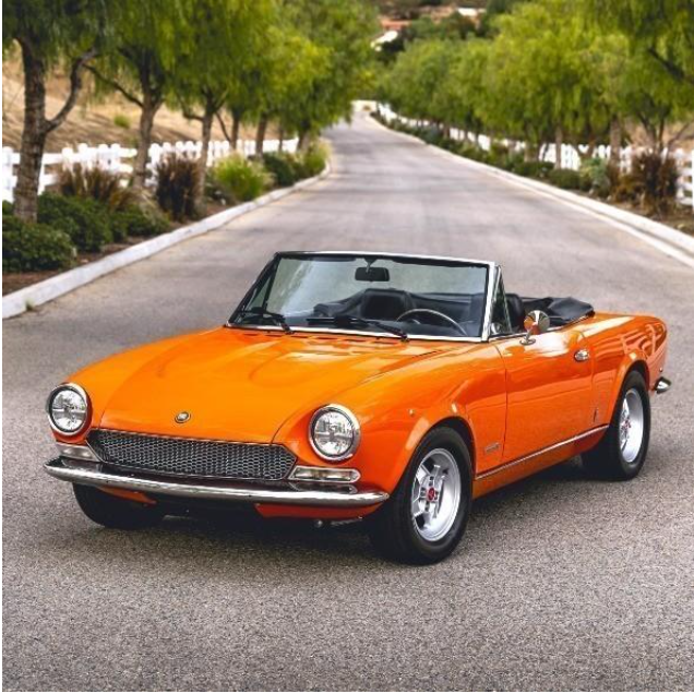 A vintage Fiat 124 Spider — so pretty you could pinch its little orange cheeks.