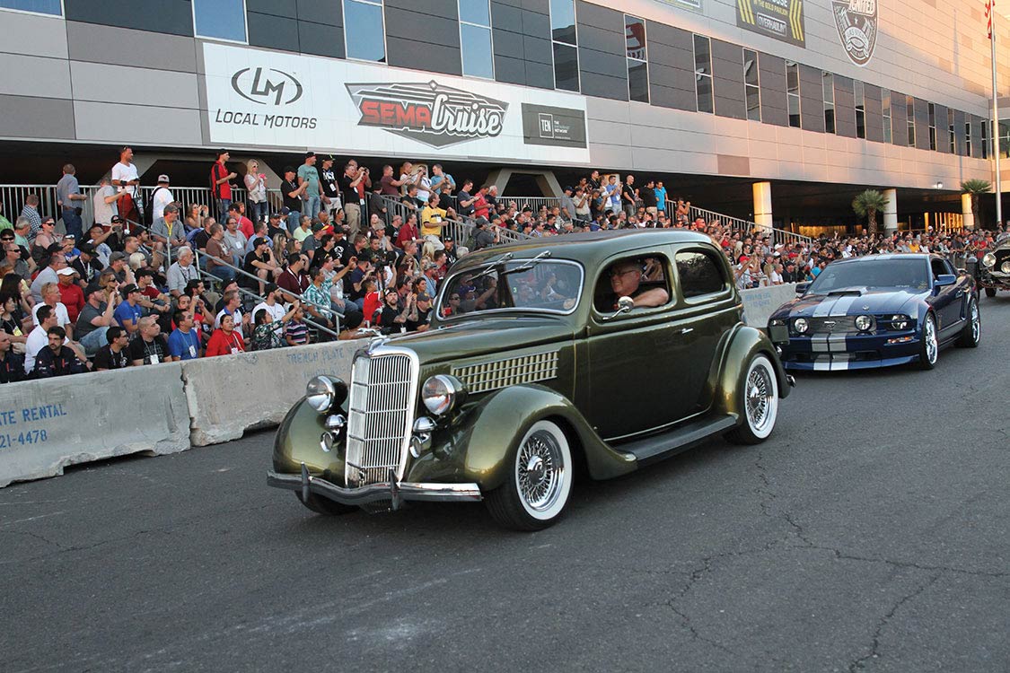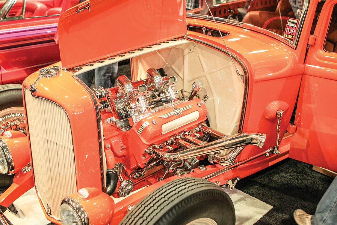 Luckily for casual onlookers, a good deal of the Mercury’s electrified components have been put on full display inside the trunk, but more notably underneath the hood. In the spirit of this Mercury Eight, once equipped with a V-8 engine, Ward felt it respectful to pay homage to the car’s past by assembling a V-shaped arrangement of Tesla Model S batteries and control units where the old engine was. A radiator and dual e-fans are also present, but not just for looks—they function as the car’s thermal cooling system. Ward himself would be the first to admit that the energy spent on machining the controller cases to look like combustion engine components with the cooling fin details and all was a little excessive. But all that work was necessary to attain the ideal level of aesthetic the Mercury deserved.