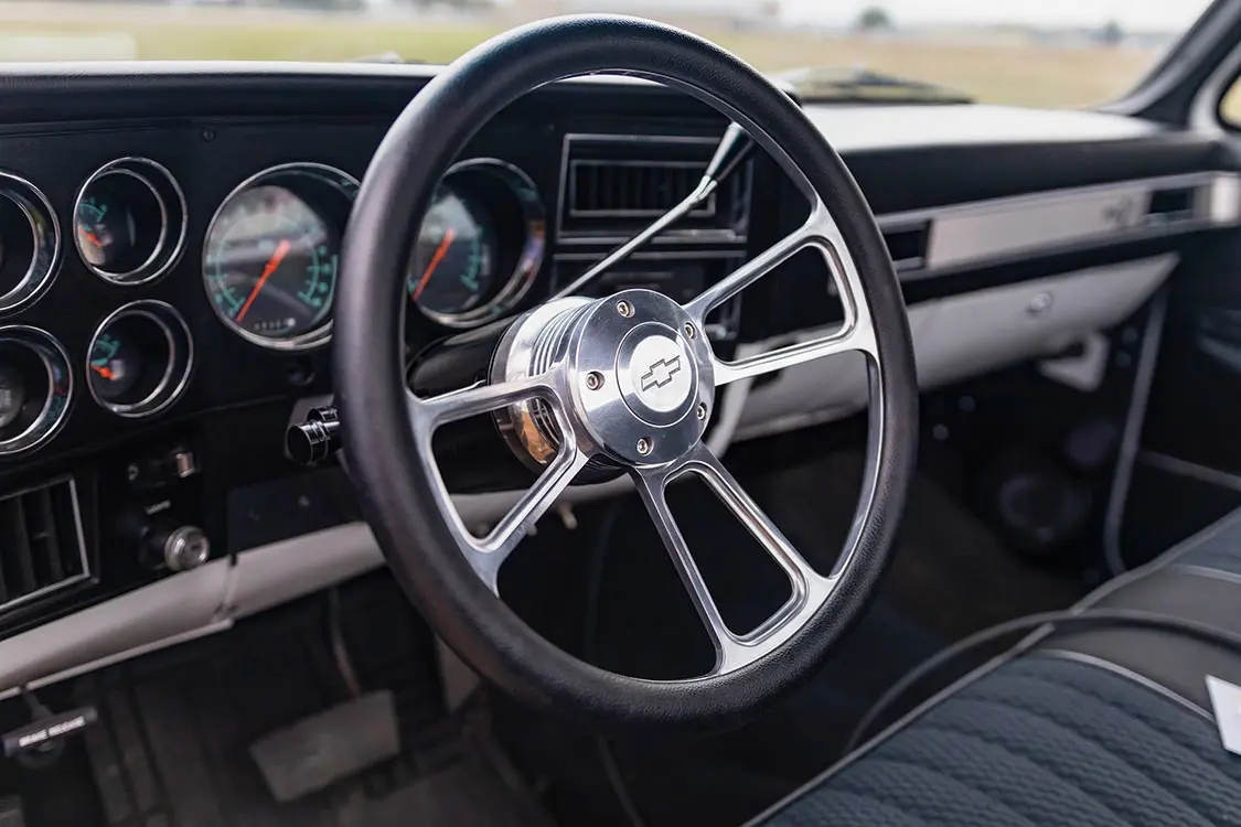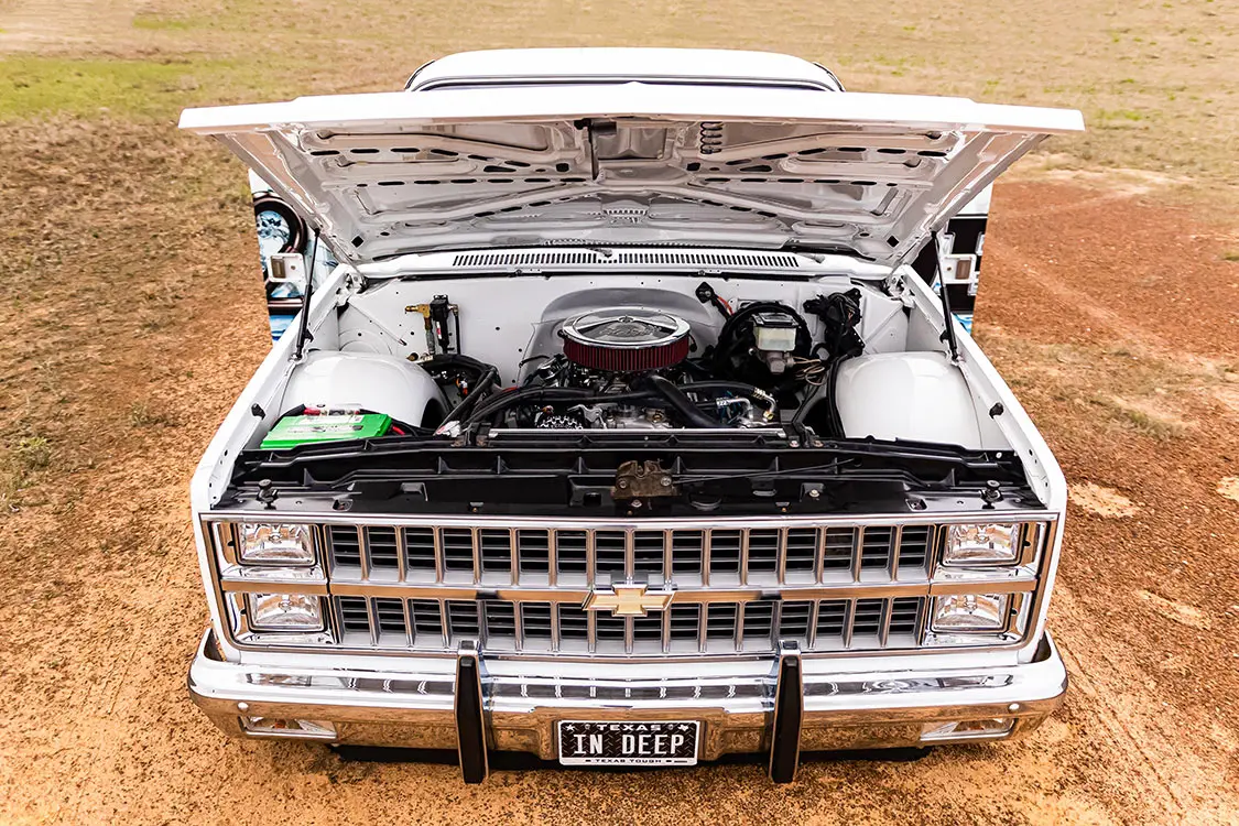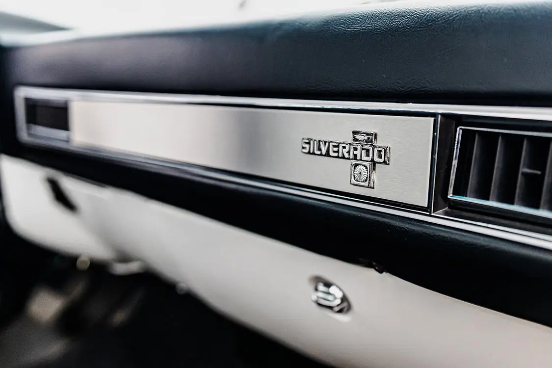The truck is running control arms with a wishbone kit from Nfamous Metal for that super tucked stance that is adjusted by an AVS air-ride kit. The slammed frame lays around 20- and 22-inch Detroit Steel D-Town wheels to capture a classic appearance. Cooling off the Texas heat is a Classic Auto Air A/C system, which is an absolute must for this climate.