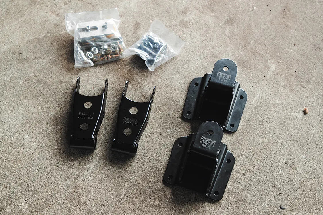 We’re happy to have you all back to see some more tech with us! This month we’re working with our friends over at Belltech Suspension to take our stock-form Ram 2500 and add a 4-inch rear shackle and hangar kit along with Belltech’s Street Performance shocks so we can get that low, aggressive stance we’re going for. From our experience with this kit, we’ll improve our driveshaft angle and the ride.