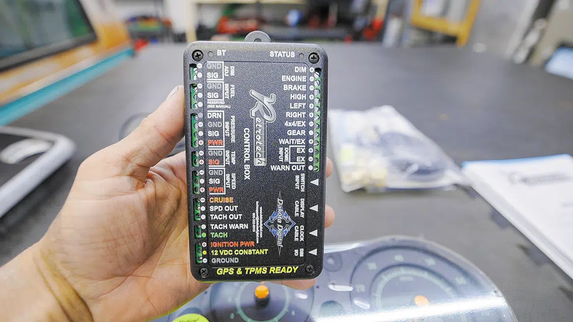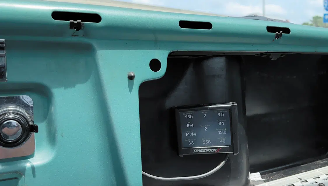 The truck receiving this instrument cluster is an original-paint 1967 C10 known as Project Last Chance. Last year we built this truck for the 2022 Hot Rod Power Tour and packed it full of goodies, including a modern drivetrain controlled by a Holley Terminator X Max. The Holley handheld display already shows all the necessary engine vitals along with vehicle speed. Dakota Digital has once again outdone itself by creating an interface module (BIM) that connects directly to and reads data from the Holley system to display on the instrument cluster.
