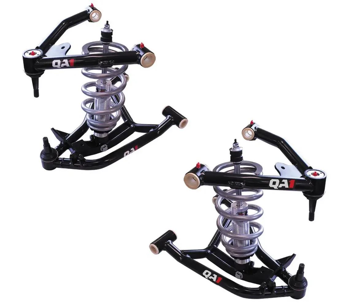 The QA1 Level 2 kit integrates control arms with coilover shocks, delivering a drop of up to 4 inches with popular drop spindles or up to 2 inches without. This allows you to achieve the perfect ride height while making room for wider wheels and tires. The single adjustable QA1 Pro Coil systems let you fine-tune the valving to meet your specific driving needs, providing unparalleled customization.