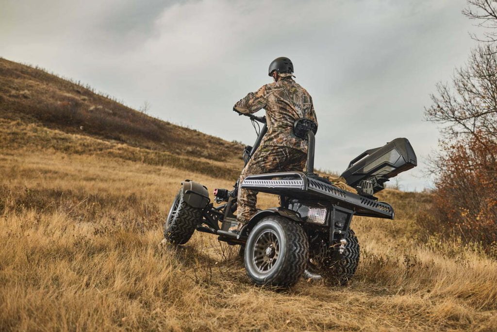 Instant power to the four 3000-watt hub motors (one in each wheel) is supplied by the powerful 9.6 kWh rechargeable lithium-ion battery. You get 147.6 Ah and 64-volt nominal, 72-volt peak power output from the custom “LytePack” battery. The battery is built by LyteHorse to the IP67 standard (it’s waterproof) and can be ordered in several configurations to provide the range needed for the tasks at hand. Charging your LytePack battery is done using the onboard smart charger, just plug it in to any household outlet.