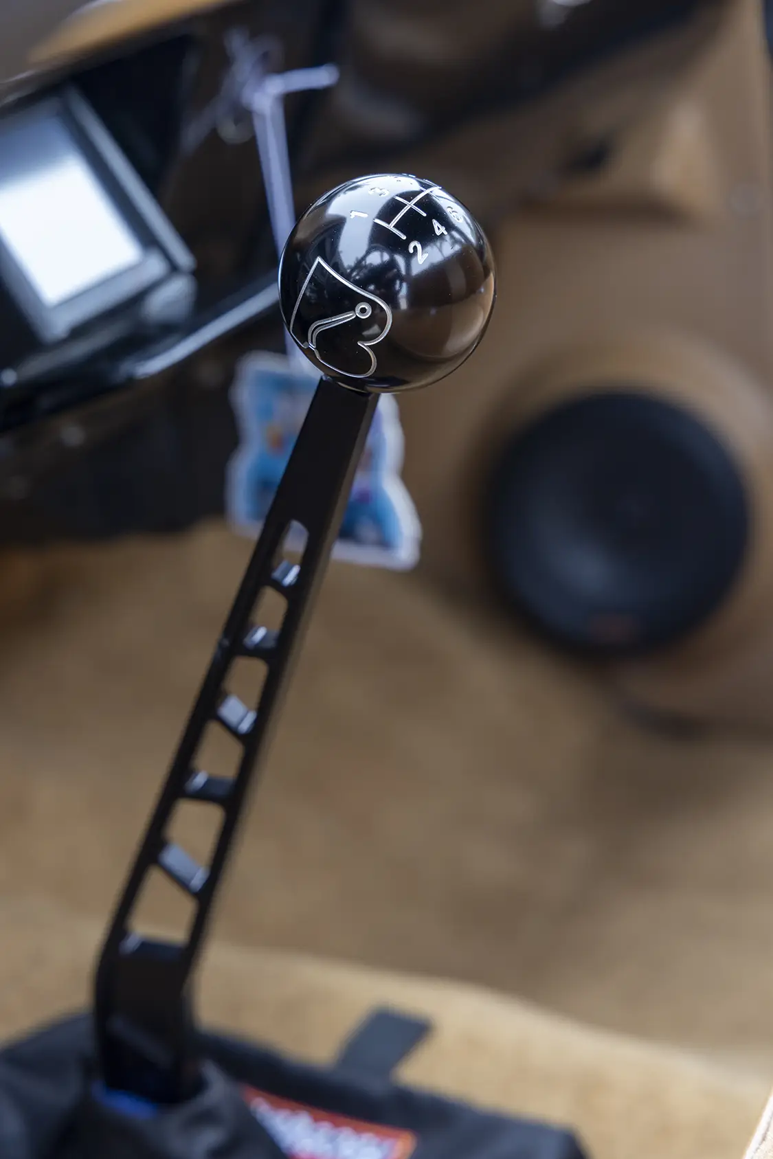 Dirty Dingo mounts and Bowler components help the engine bolt easily to a Tremec TUET11009 5-speed, paired with a Monster SK twin-disc clutch and a Bowler mid-mount shifter. Power flows back to a 12-bolt rearend by Doghouse Customs, loaded with 3.73 gears, an Eaton Truetrac, and Quick Performance axles.