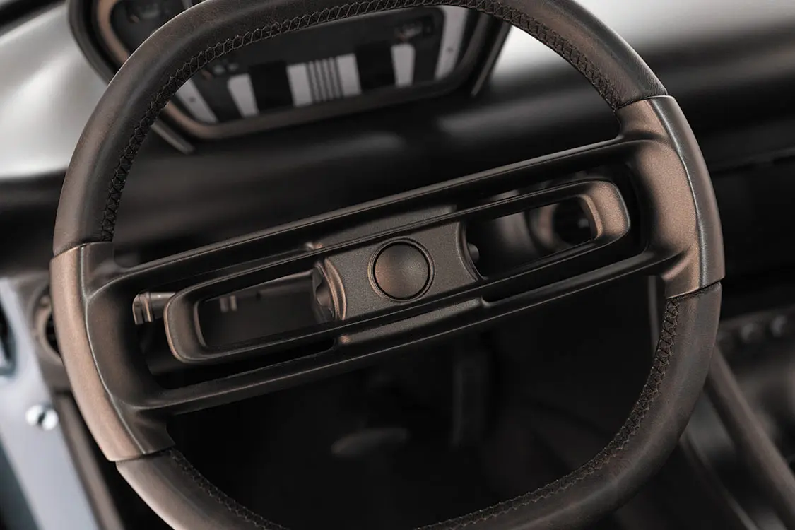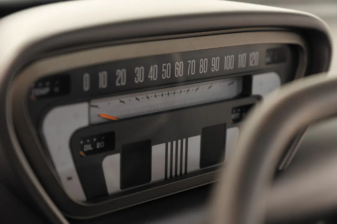 The owner of the F-600 selected Area 51 Blue—a factory Ford paint color to cover the exterior of the of the truck. Even though the hue is a more contemporary selection used on late-model Bronco and pickups, it looks right at home on the ’56. Soon after the paint dried and the multiple layers of clearcoat were buffed to a mirror-like shine, fabrication and interior work immediately began within the confines of the newly expanded cab. Scott and Mark fabricated a custom center console and metal dash with an opening designed specifically to house a Dakota Digital gauge cluster. A custom bronze paint was then used to cover the dash, upper halves of the inner doors and pillars, as well as the console, steering wheel, and so many other smaller accessories.