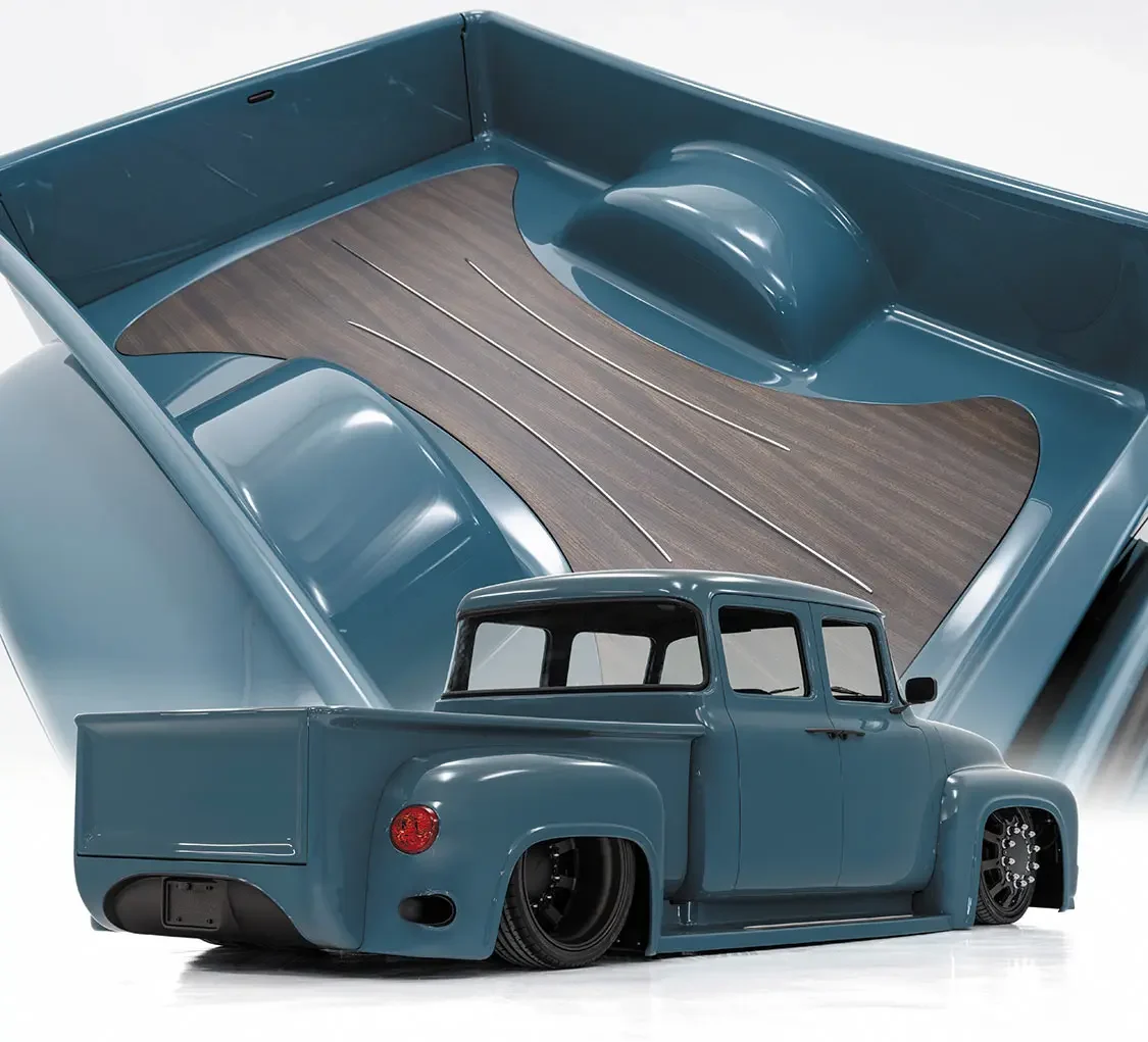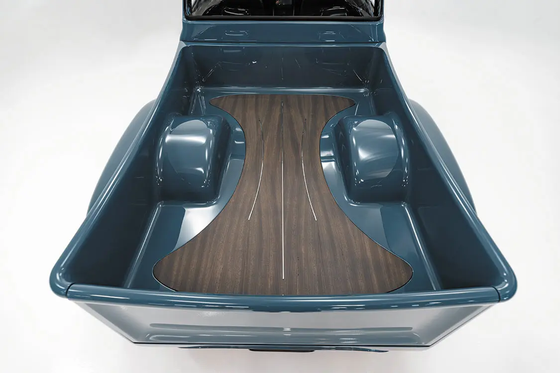 “A curved opening was then cut into the bed floor to accept a slab of exotic zebrawood, which gives the truck that extra touch of class.”