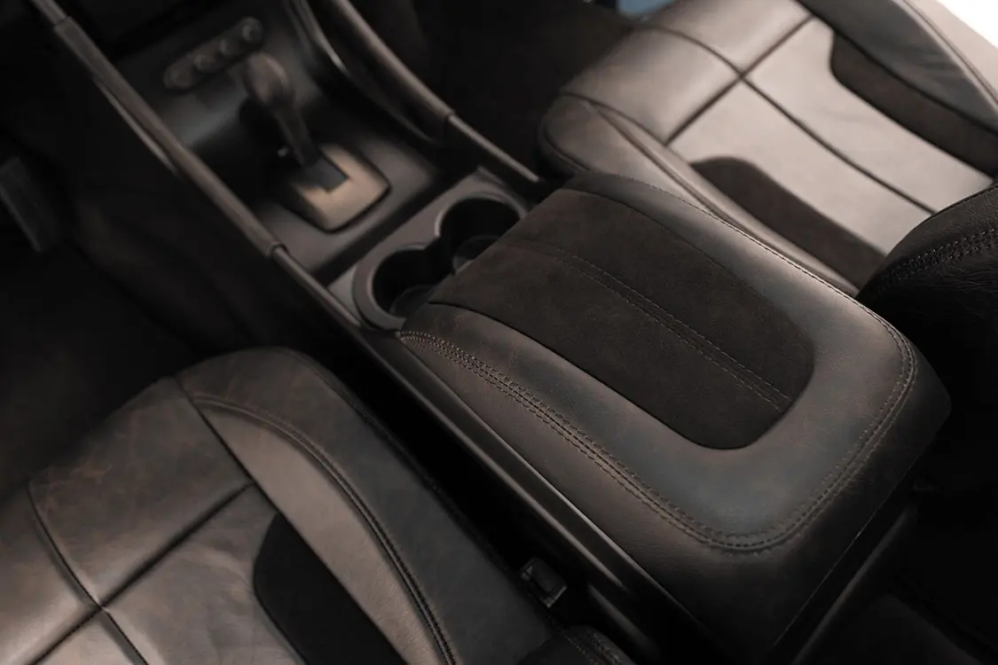 The chassis was outfitted with a body mount configuration much different than the factory F-600’s frame to accommodate a one-off crew cab that features a rear set of “suicide” doors and reinforced fabrication throughout, a handmade roof, floor, custom valance and grille section, and everything else imaginable. Not only was the quad cab specially designed for the project, but so was the bed that features unique rounded corner panels matched the cab for a façade that naturally flows from front to back. A curved opening was then cut into the bed floor to accept a slab of exotic zebrawood, which gives the truck that extra touch of class.