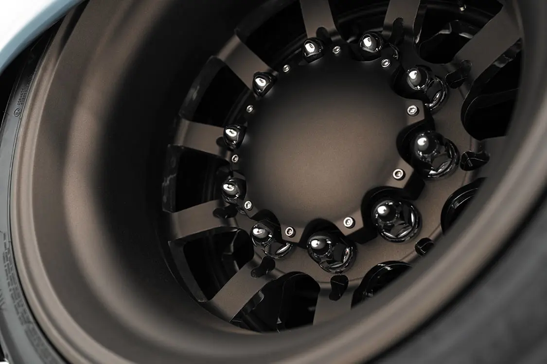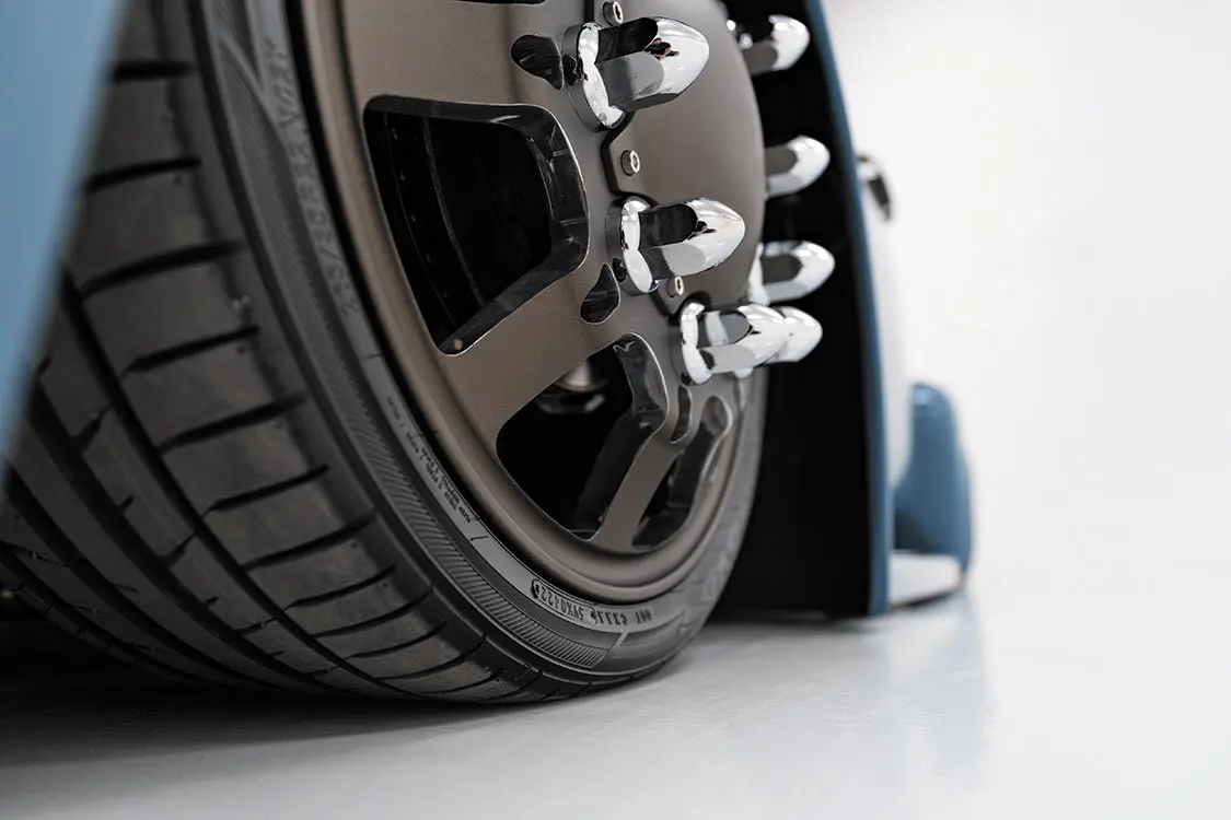 Another inclusion that was planned well before the project begun was maintaining the F-600’s rear dually wheel setup. Even though the truck’s frame was designed to lay flat on the ground, it still is very much a big truck that can still roll on big wheels. Nothing short of 22.5-inch Alcoa semi wheels (which were all turned down to 22-inch diameters) would do. Late-model 1-ton GM power brakes were also incorporated to into the chassis to bring the hefty F-600 to a controlled halt. Things were looking up at this point, but there was another factor baked into the new frame that would soon reveal what else Scott and Mark had cooking.