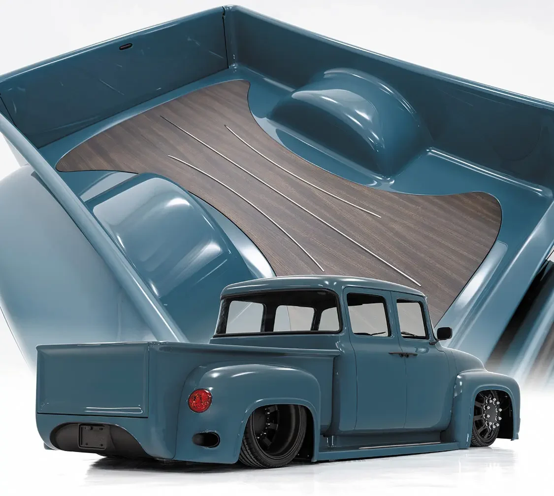 A curved opening was then cut into the bed floor to accept a slab of exotic zebrawood, which gives the truck that extra touch of class.