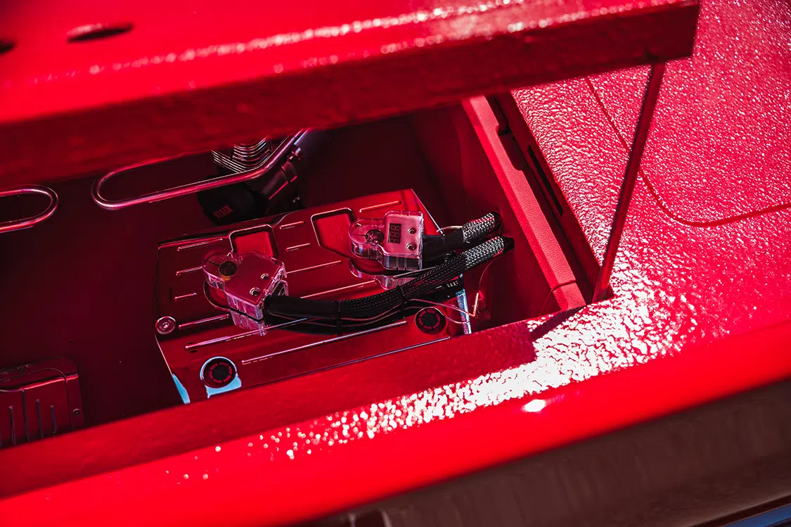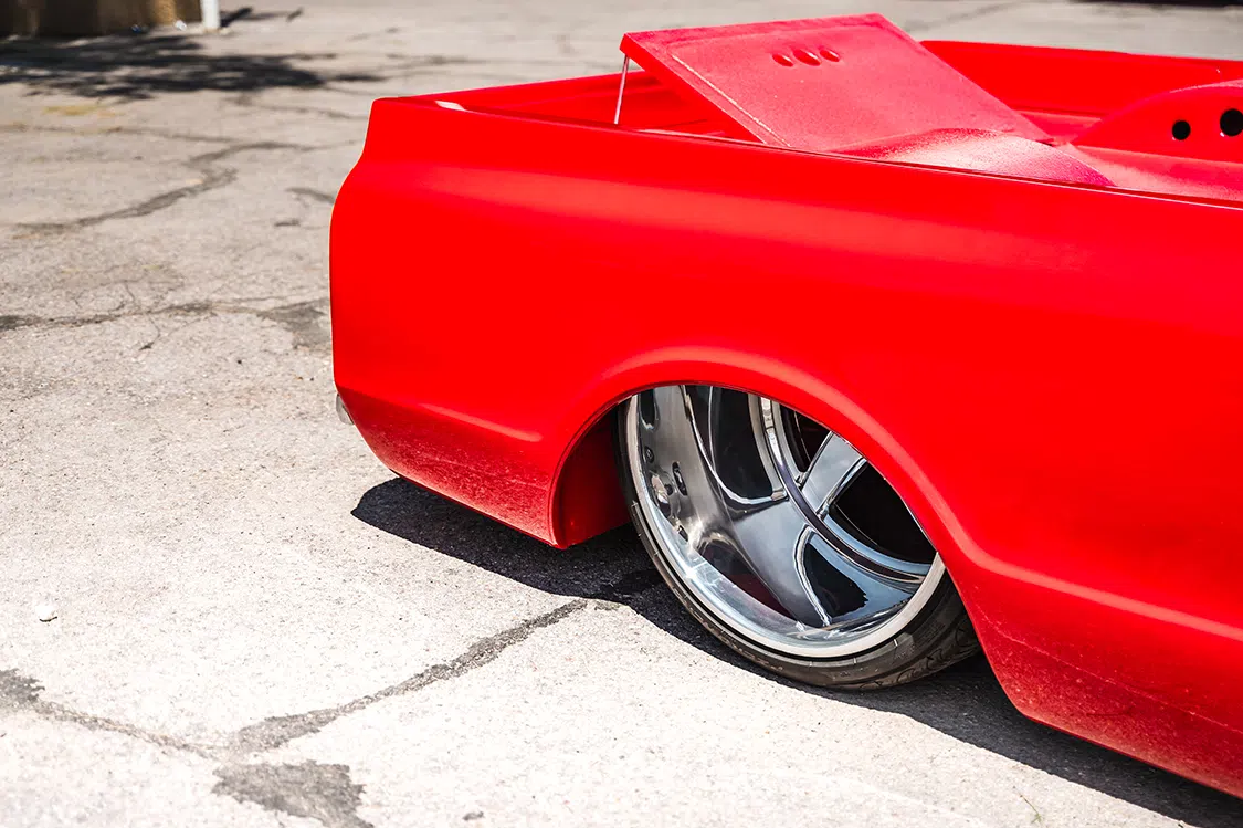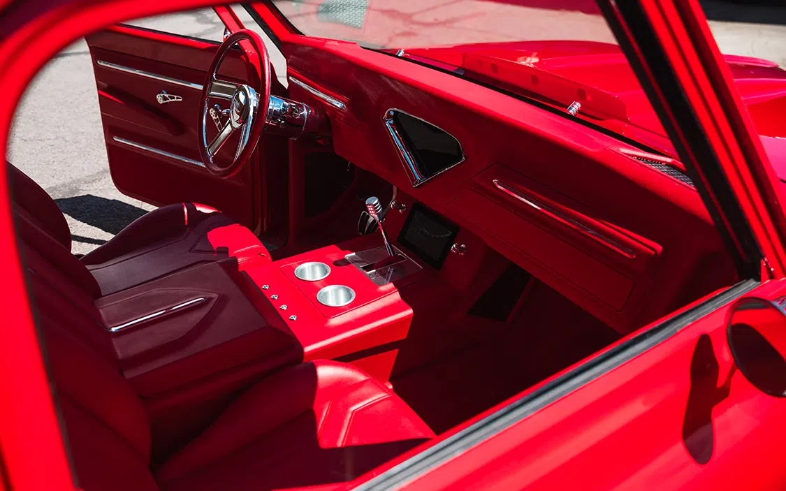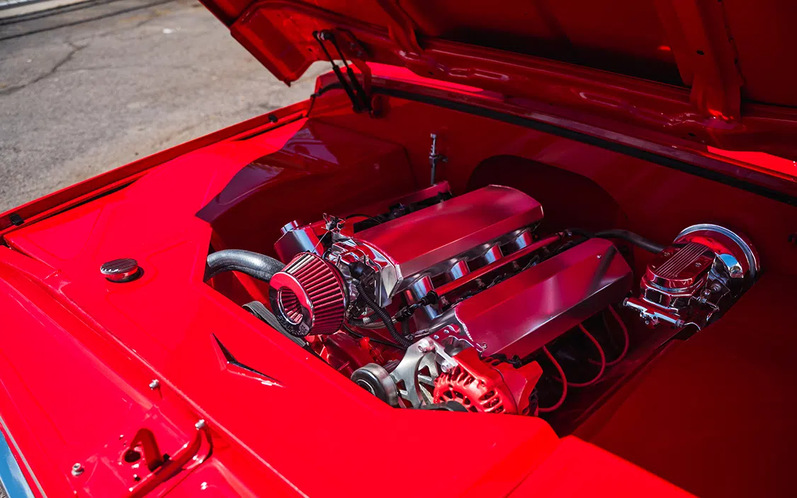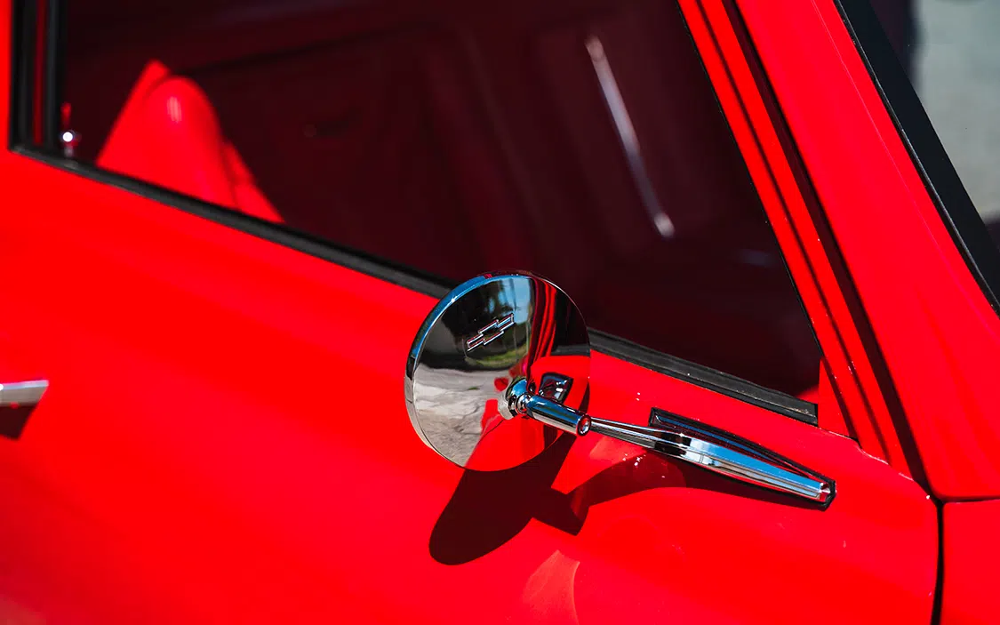 Inside, the truck’s interior is a striking blend of retro and modern. A dashboard from a ’58 Apache was integrated, becoming an instant conversation piece. The seats from a ’95 Cavalier were carefully color-matched to the truck’s bold red exterior, creating a cohesive look. In the rear, an ’02 Camaro rear axle was modified to accommodate 16-inch-wide Intro Apache wheels, with Camaro brakes to ensure it stops as beautifully as it goes. The air bag suspension on all four corners, combined with a raised bed setup, showcases the intricate wiring and craftsmanship that make this truck stand out from any angle.