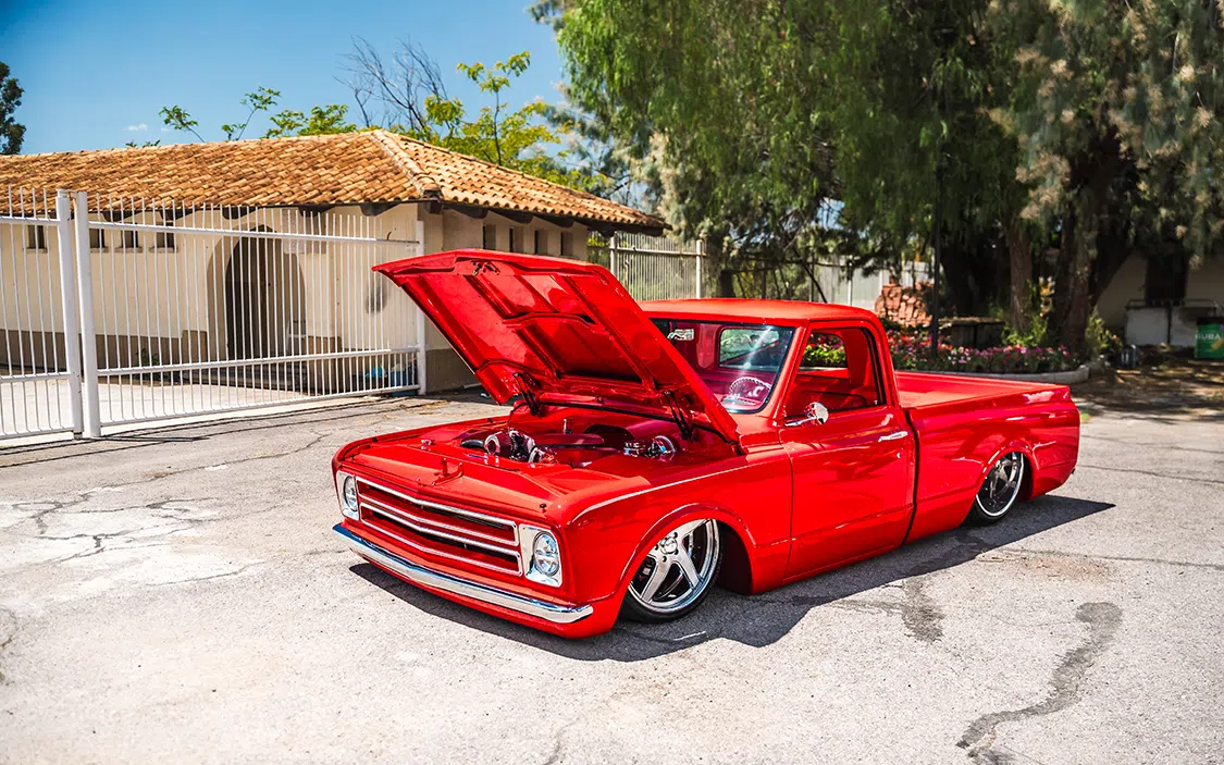 One day, Adan found himself with a ’67 C10, and the wheels were set into motion for his ultimate build. After five years of hard work, late nights, and countless trades, his vision became reality. The project was entrusted to Israel Espinoza from Centavo’s Shop, where the foundation for the truck’s transformation took shape. The frame came from a ’98 OBS and was meticulously fabricated to fit the C10. Custom touches abound, such as the molded fenders from a ’67 Camaro and bumpers, and are all fitted to perfection. Under the hood, a 5.3L engine, accented by billet pieces and a seamless wire tuck, sits proudly.