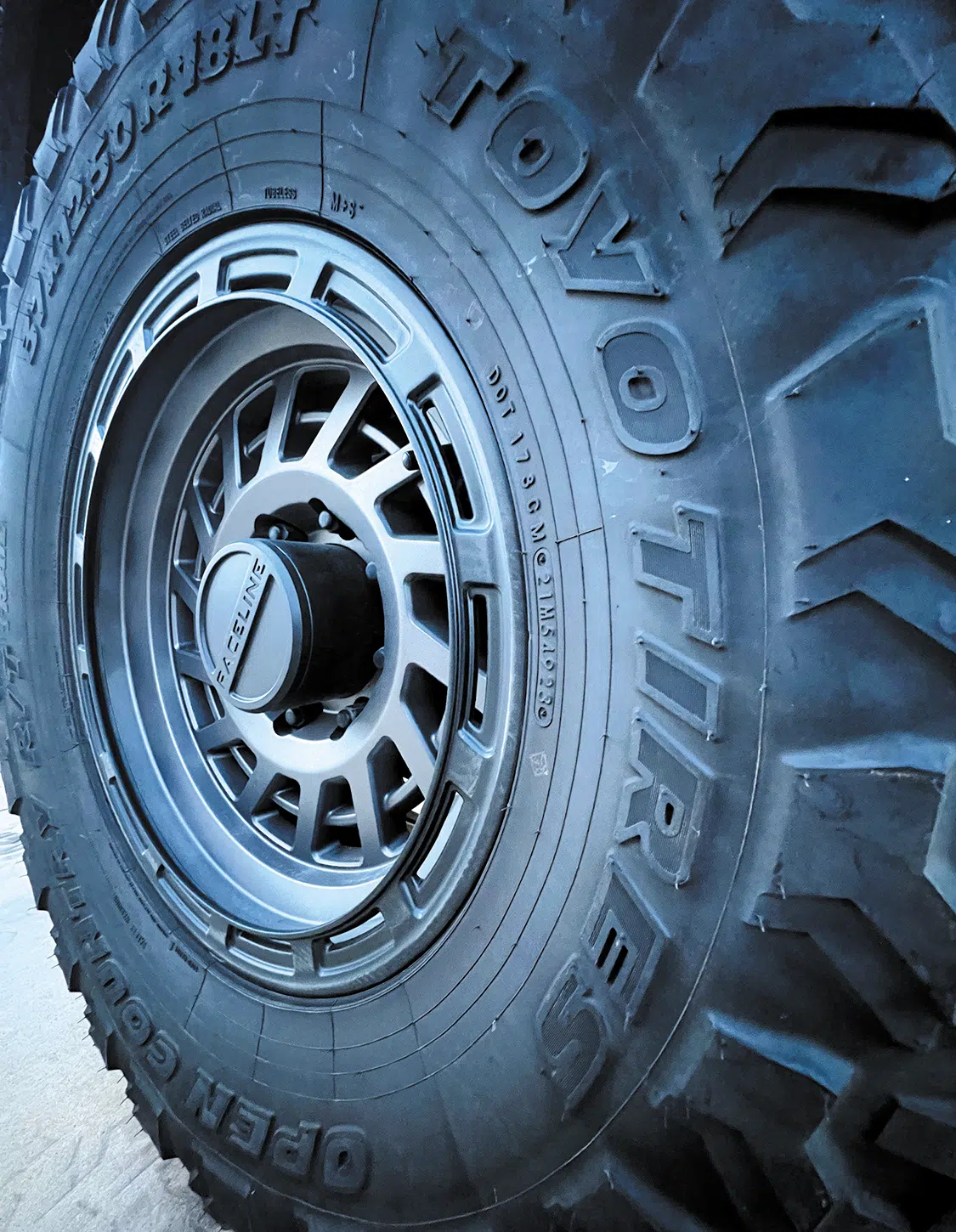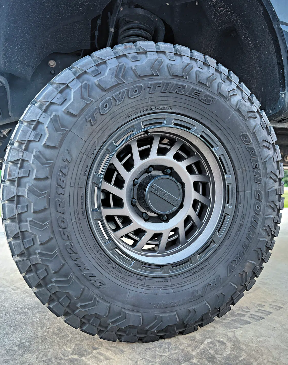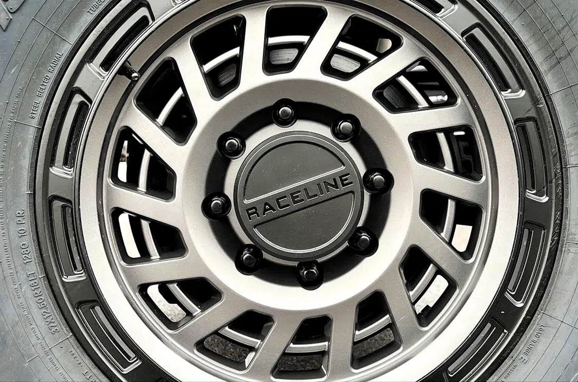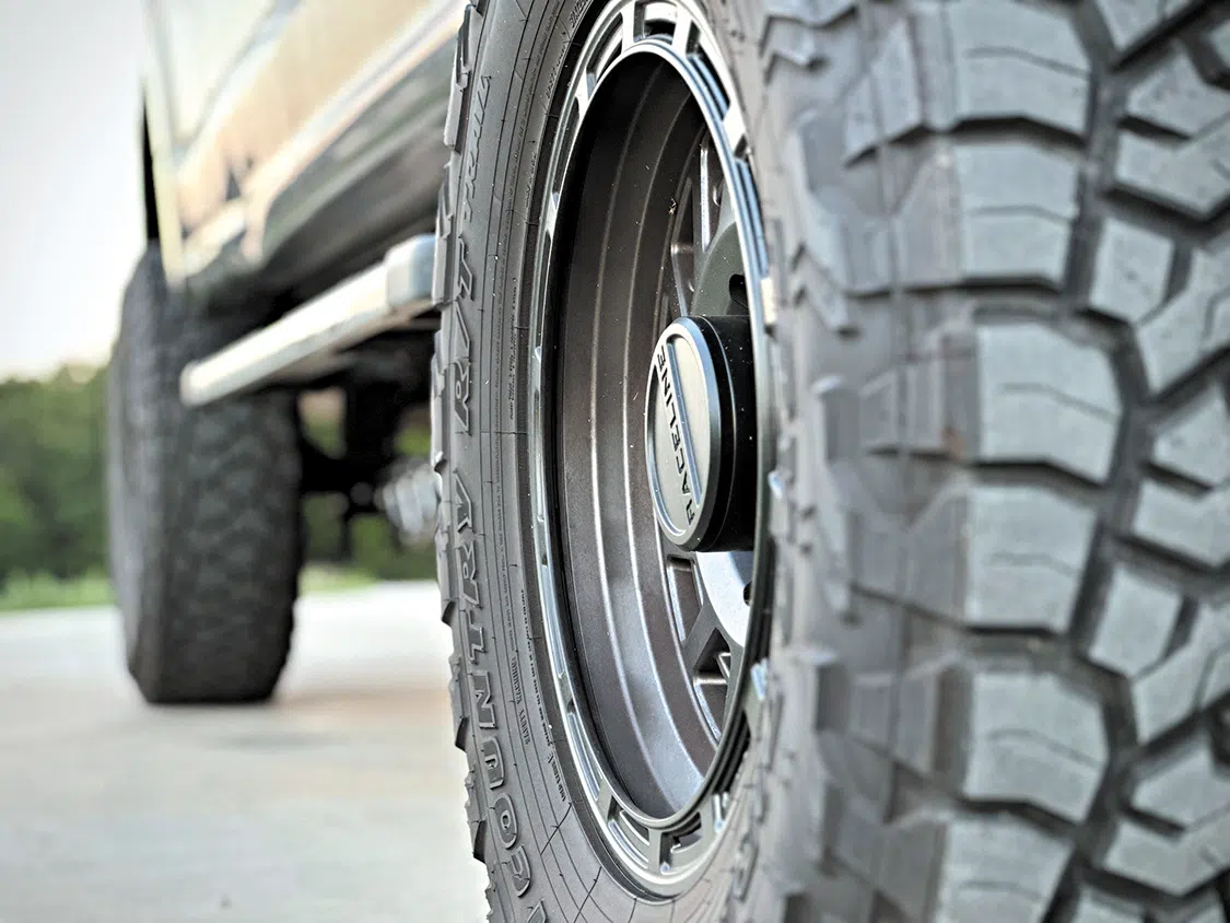 Again, we wanted something aggressive but also totally “daily driver” status here for the hauling duties, winter months, and do-it-all nature of our F-250 build. We ended up going with a set of 18×9-inch Raceline 957GB Halos wrapped with Toyo 37×12.5×18 Open Country R/T tires, which gives us a nice ride with some added wet/mud traction when needed.