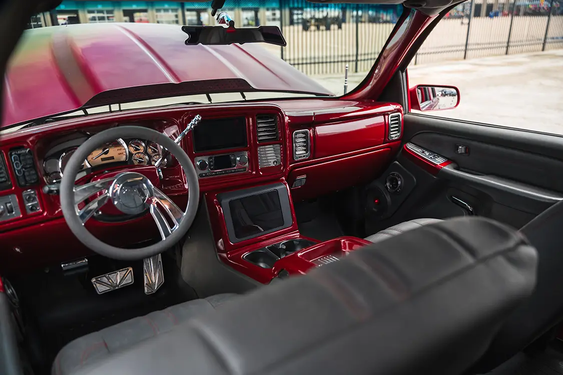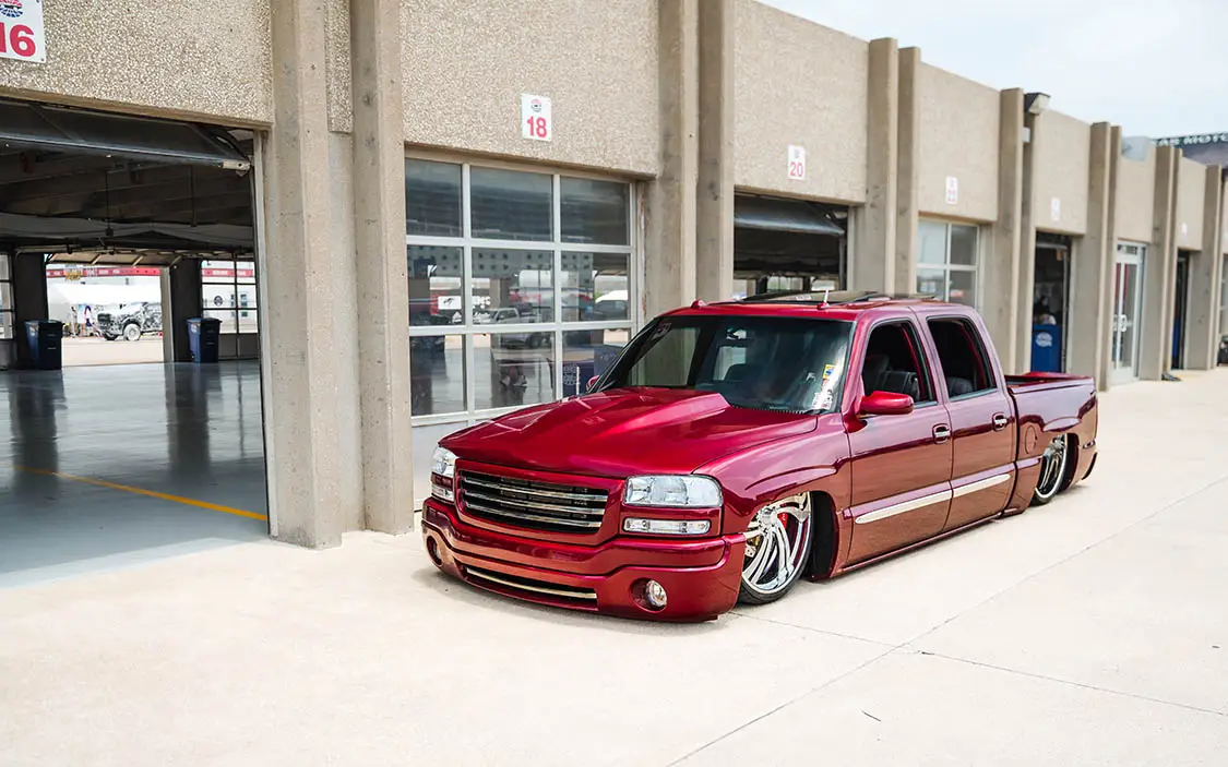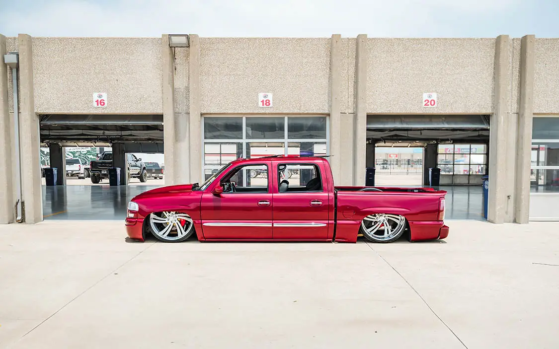 ADRIAN Barrios’ 2005 GMC Sierra, better known as Low4Doe, is a straight-up head-turner in the custom truck scene. Coming out of Shafter, California, this Sport Red metallic beast is the perfect mix of street attitude and detailed craftsmanship. Adrian built his truck himself over three years with around $50k sunk into making his dream ride a reality. Growing up in the late 1990s and early 2000s, Adrian was all about the slammed truck culture, and Low4Doe reflects that vibe hard. It’s built to stand out, not blend in.