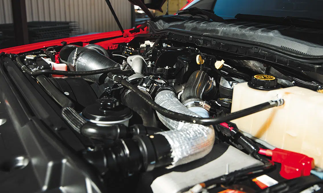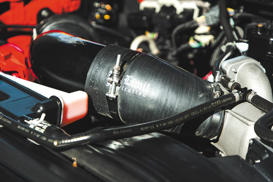 First and foremost, Randall and his team at The Diesel Shop outfitted the engine with a KC Turbos Whistler turbocharger, which added over 100 horsepower with its drop-in application. The team also added a five-position chip for added horsepower and torque adjustability on command.